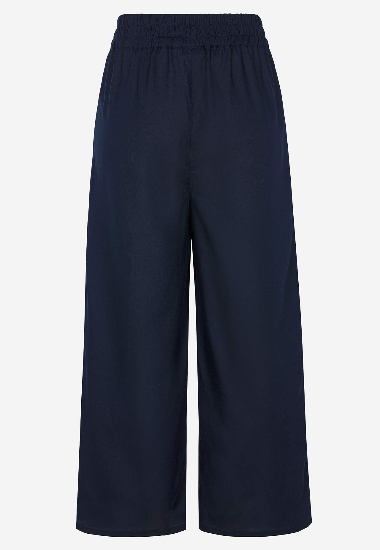 Gevlochten en luchtige culotte broek. Gladde, flexibele en verkoelende viscose. Wijde en zachte elastische tailleband. Schuine broekzakken aan de voorkant. De binnenbeenlengte is bij alle maten ca. 60 cm. Combineer met 702443.