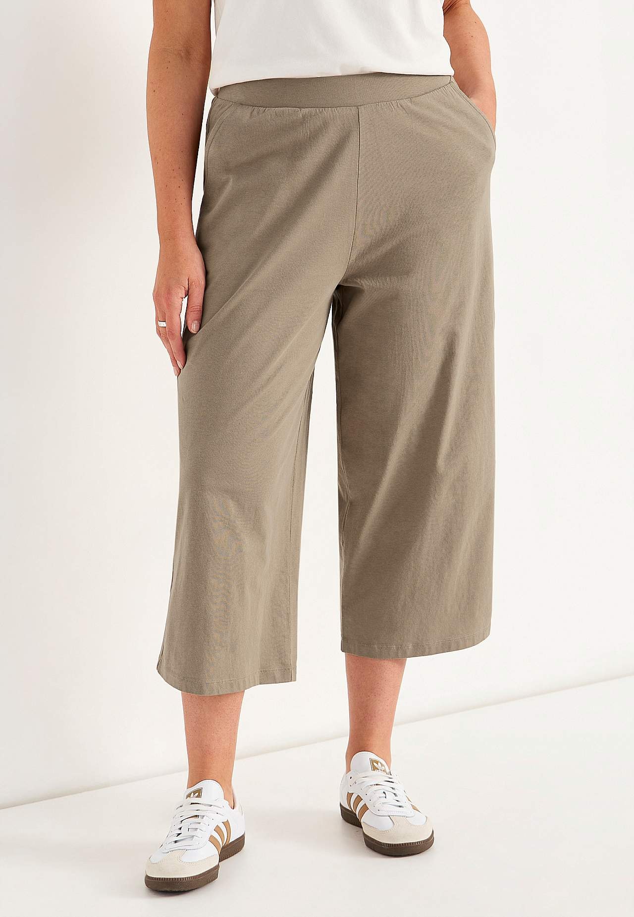 Culotte van zacht en organisch katoen. Jersey broek met wijde en rechte benen. Informele pasvorm. Hoog taille met brede en comfortabelle elastische tailleband. Schuine zijzakken. Combineer met 702634. De binnenbeenlengte varieert afhankelijk van de maat: ongeveer 57-59 cm. De voorkant varieert met de maat: ongeveer 29-39 cm... Meer lezen