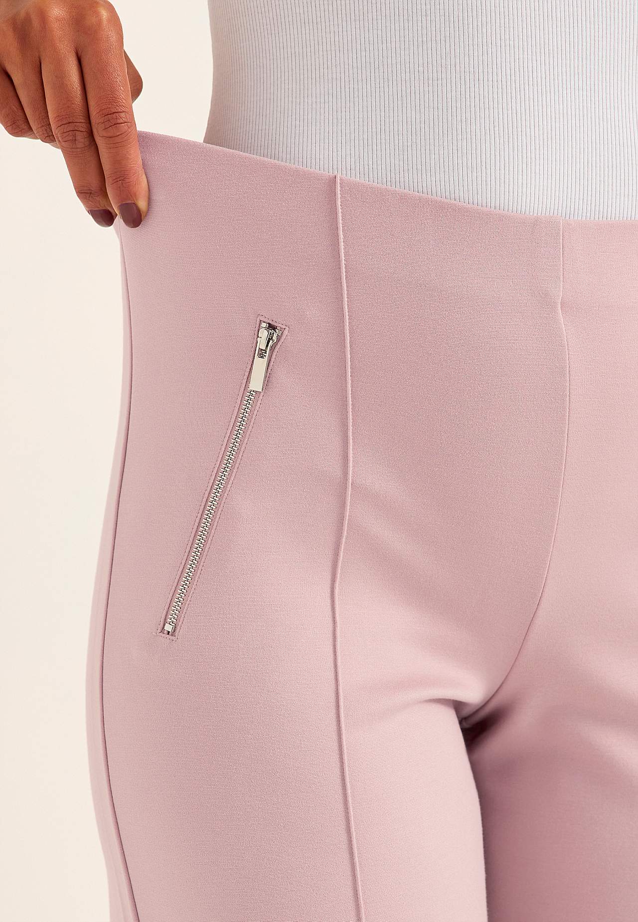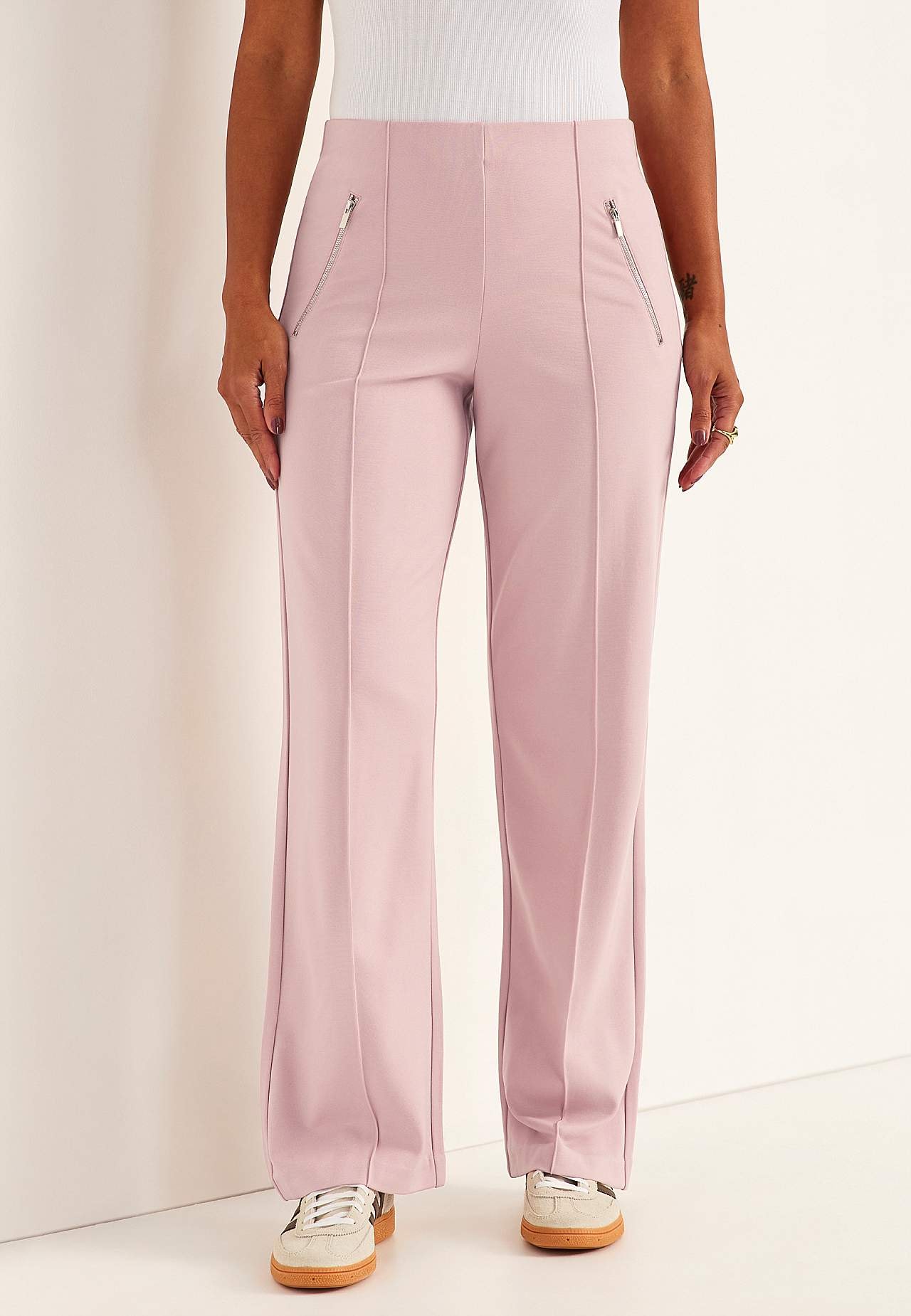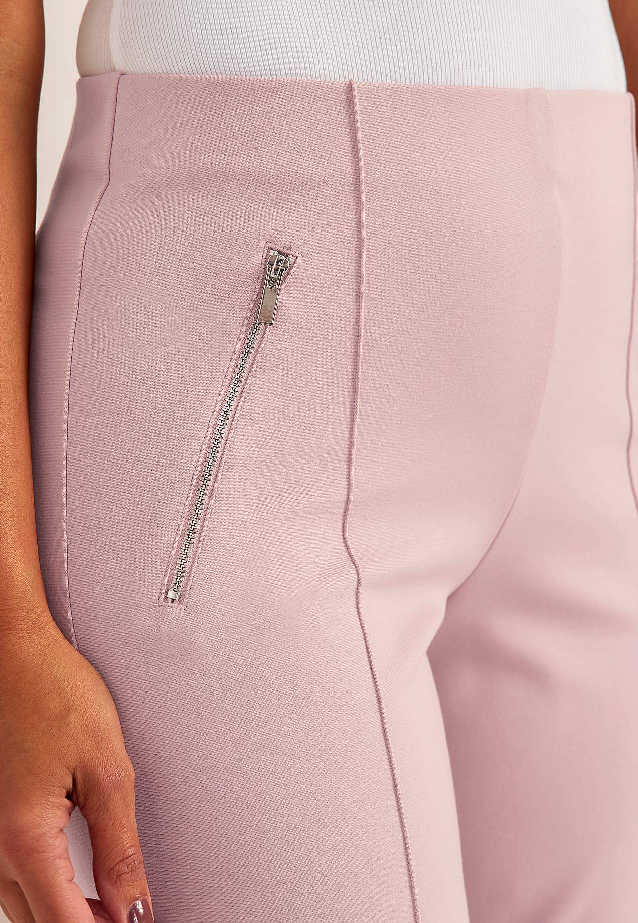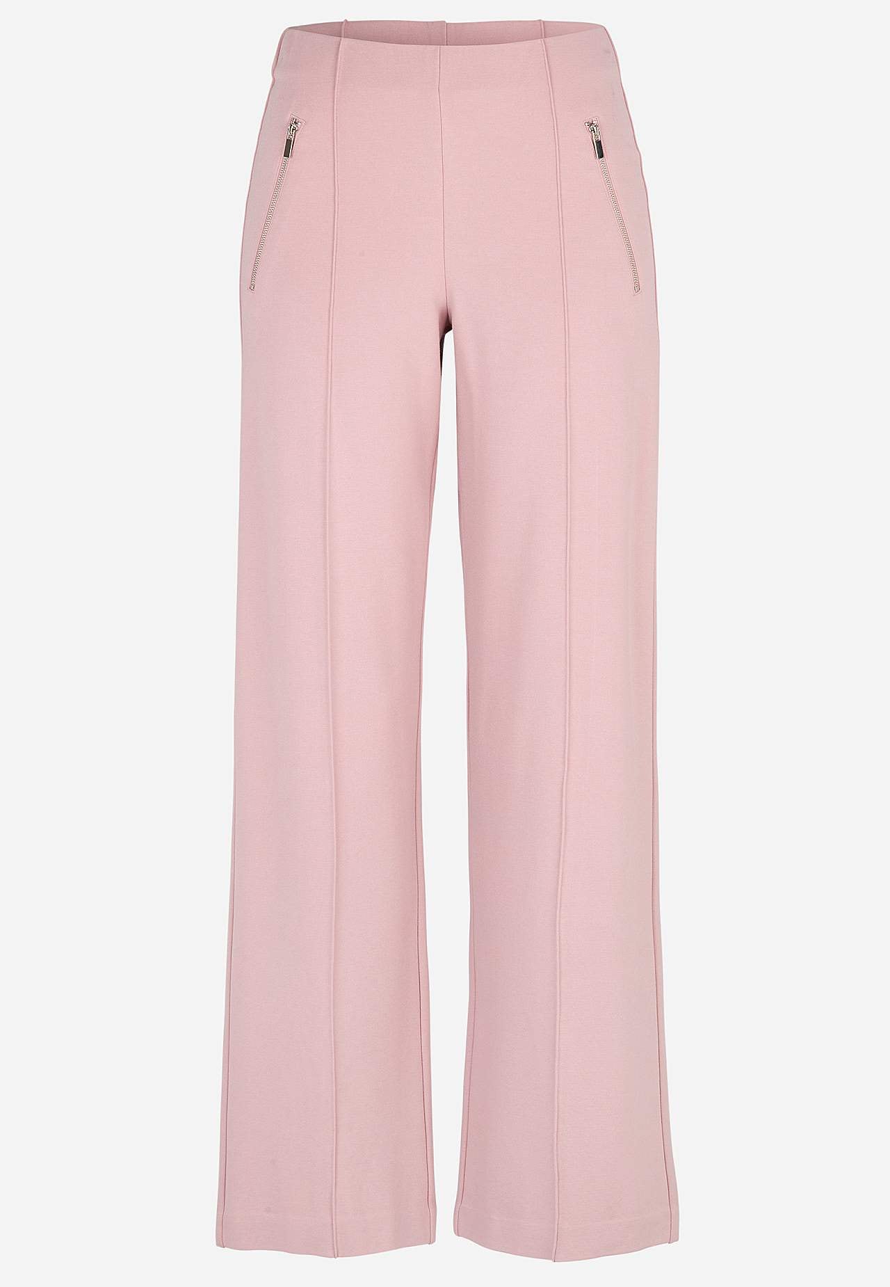 Volledige lengte broek van stevig en elastisch tricot met gestikte vouwen. Zacht en soepel materiaal met mooie drapering. Regular pasvorm met rechte en wijde benen. Normale taille met verborgen elastiek. Decoratieve ritssluitingen aan de voorkant. Gestikte vouwen zowel aan de voor- als achterkant. De binnenbeenlengte is b... Meer lezen