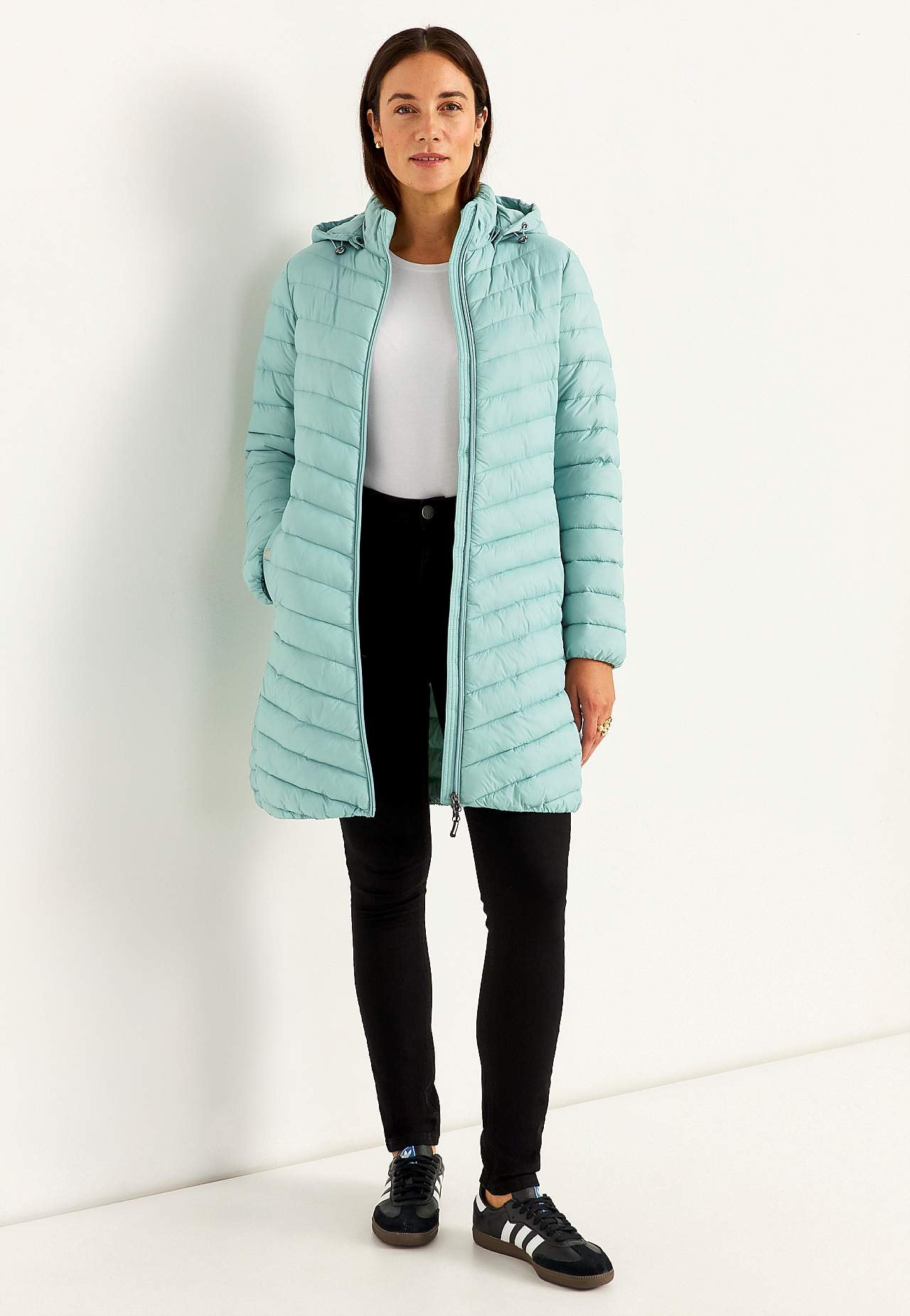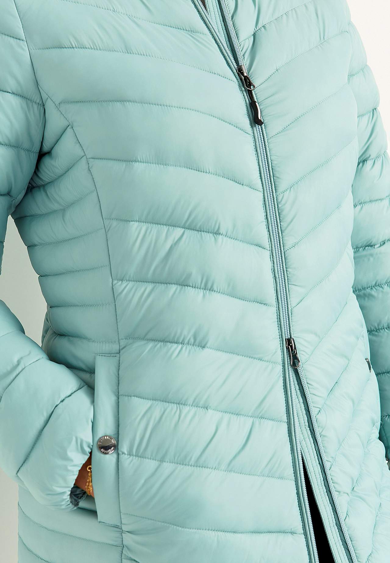 Lange lichtgewicht jas met tweezijdige ritssluiting en afneembare capuchon. Lichte jas met donsgevoel en praktische tweezijdige ritssluiting. Lichtjes langer model om te dragen als een warme laag onder een shelljack. Comfortabele openstaande kraag. Afneembare capuchon met trekkoord en stopper. Zakken met drukknoop. Elastiek... Meer lezen