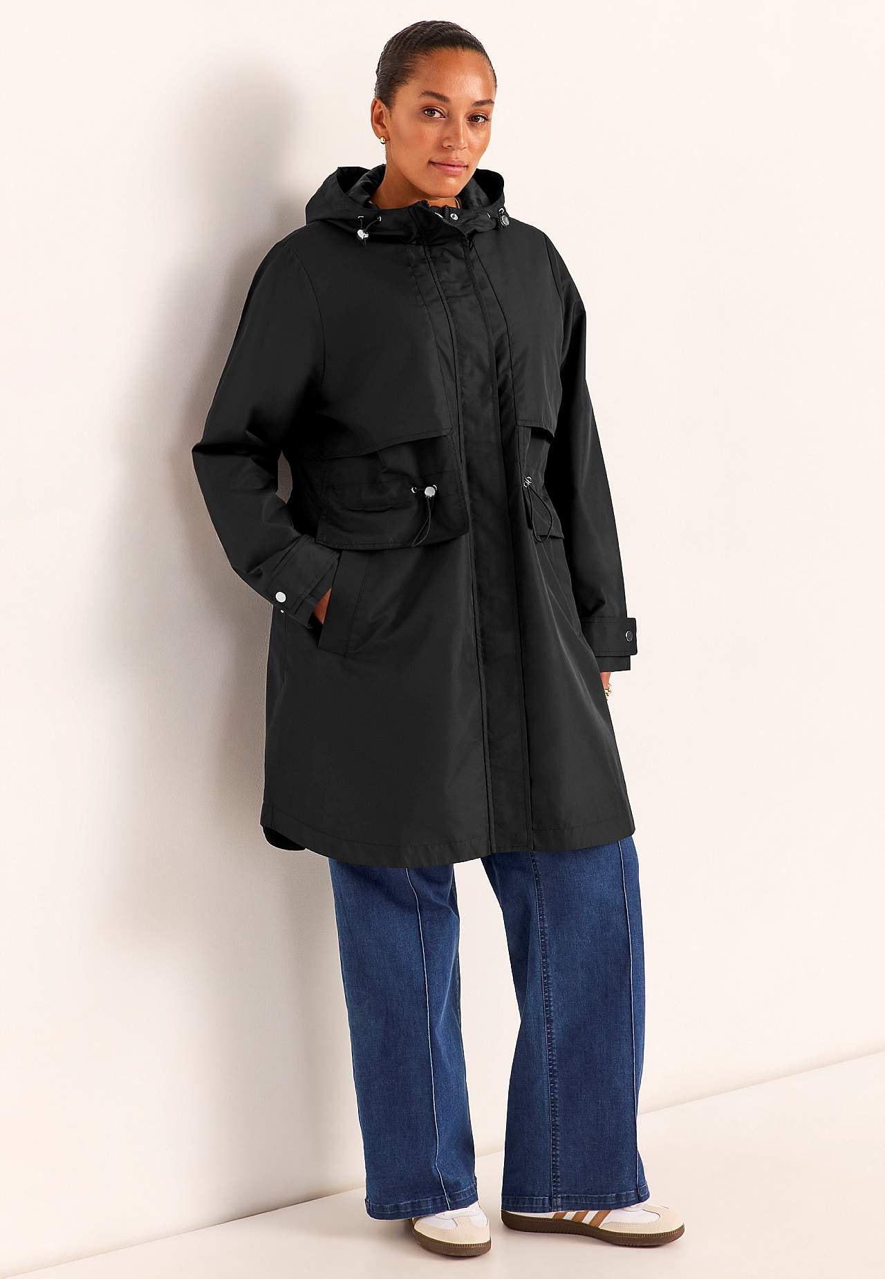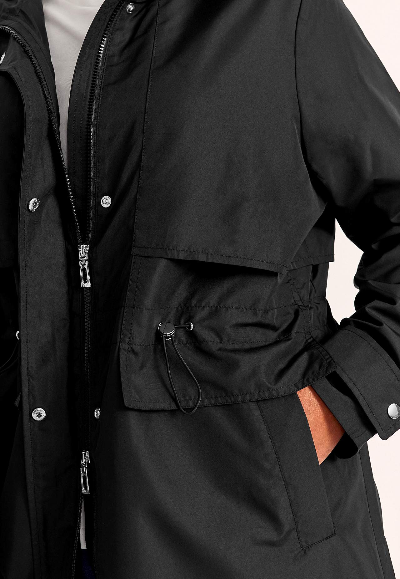 Chique parka voor het stadsleven. Regular pasvorm. Wind- en waterafstotend buitenmateriaal van licht glanzende micro poplin. Bijpassende voering van soepel polyester. Praktische tweezijdige ritssluiting. Knoopsluiting met verborgen drukknopsluitingen. Open juk aan de voor- en achterzijde. Aanpasbaar trekkoord aan de taille.... Meer lezen