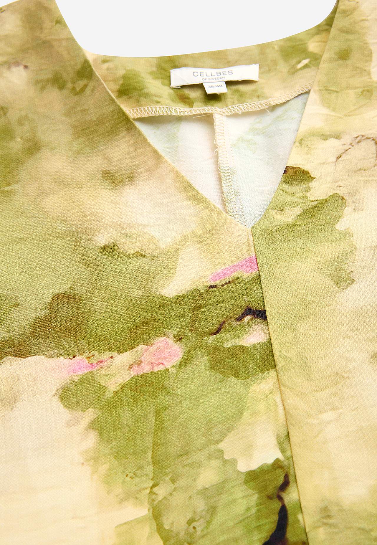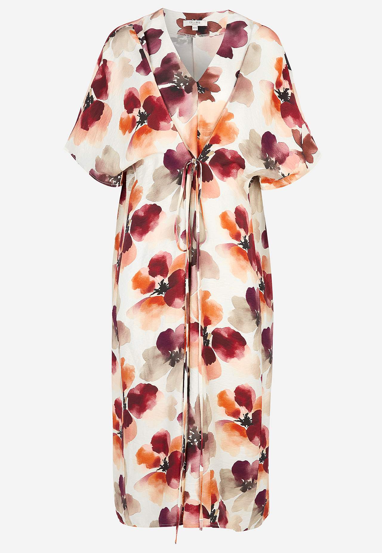 Rechte en ontspannen kimono-jurk van heerlijk luchtig viscose. Perfect voor het zomerfeest. Materiaal met licht glanzend getextureerd gevlochten materiaal. Wijde en rechte pasvorm. Nek met een v-hals. Korte en wijde mouwen. Genaaide trekkoorden aan de taille aan de voor- of achterkant vastgebonden. Rechte zoom. Lengte vanaf... Meer lezen