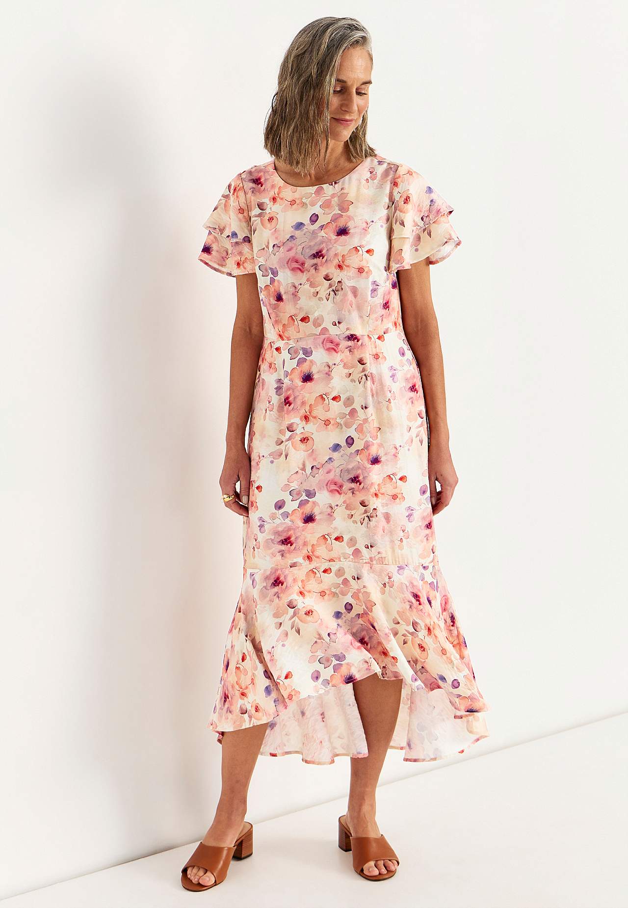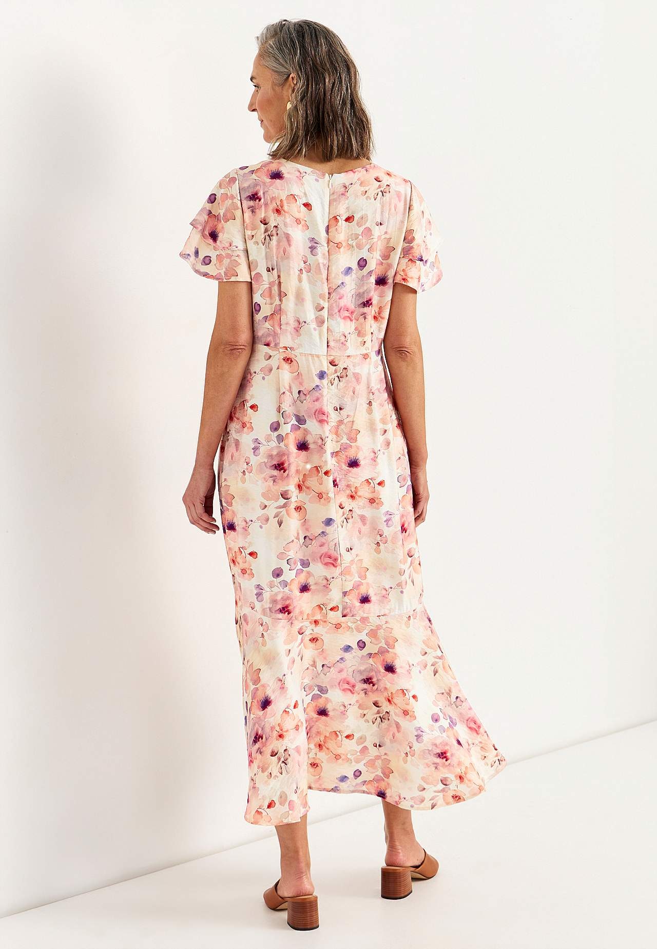 Feest jurk van verkoelende viscosemix met mooie val. Materiaal met lichte structuur. Regular pasvorm met A-gevormde onderkant. Ronde hals met verborgen rits achter. Naad aan de taille met decoratieve plooien. Asymmetrische, iets langer aan de achterkant en afgeronde zoom. De ruglengte is ca. 130 cm cm in alle maten.