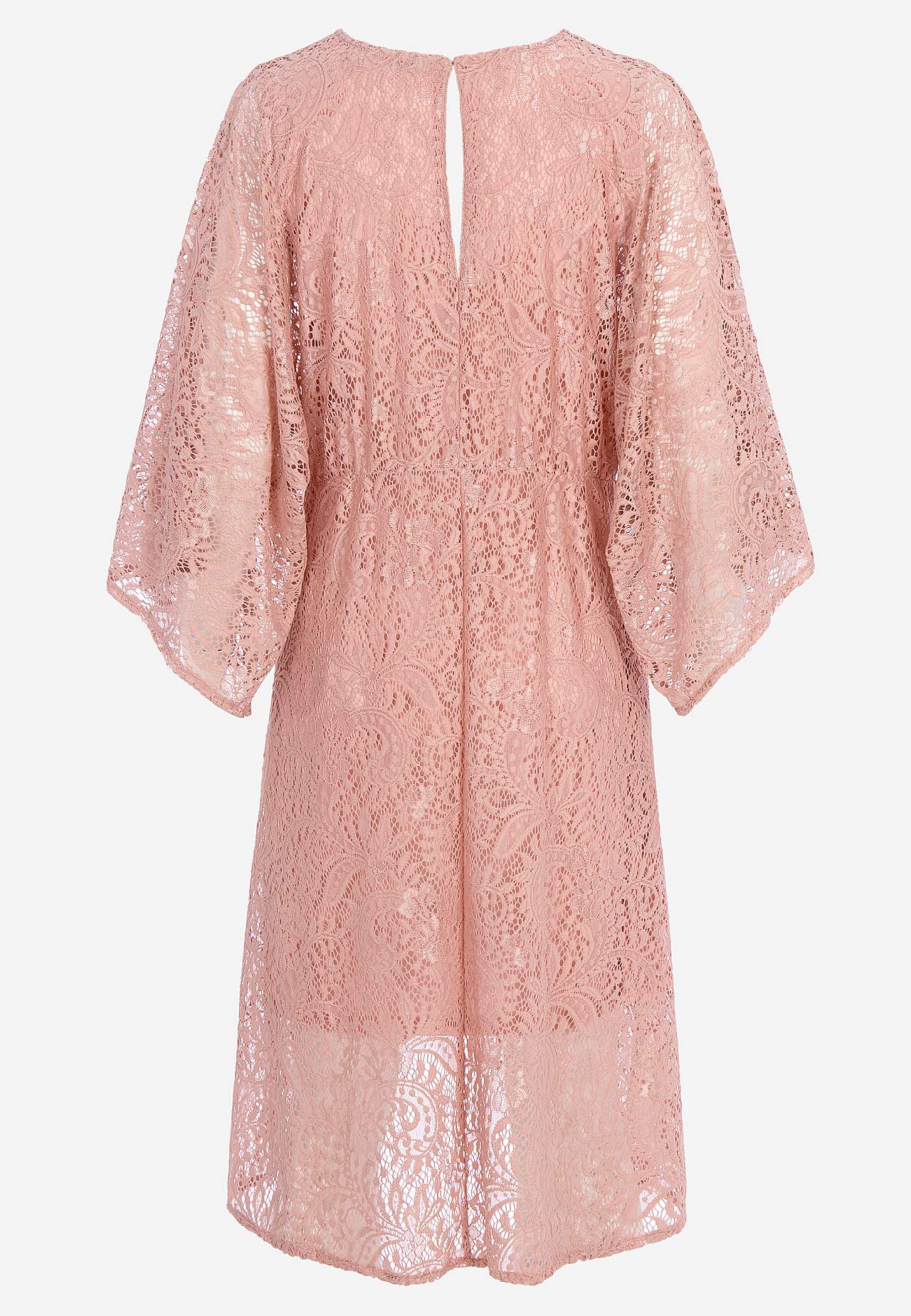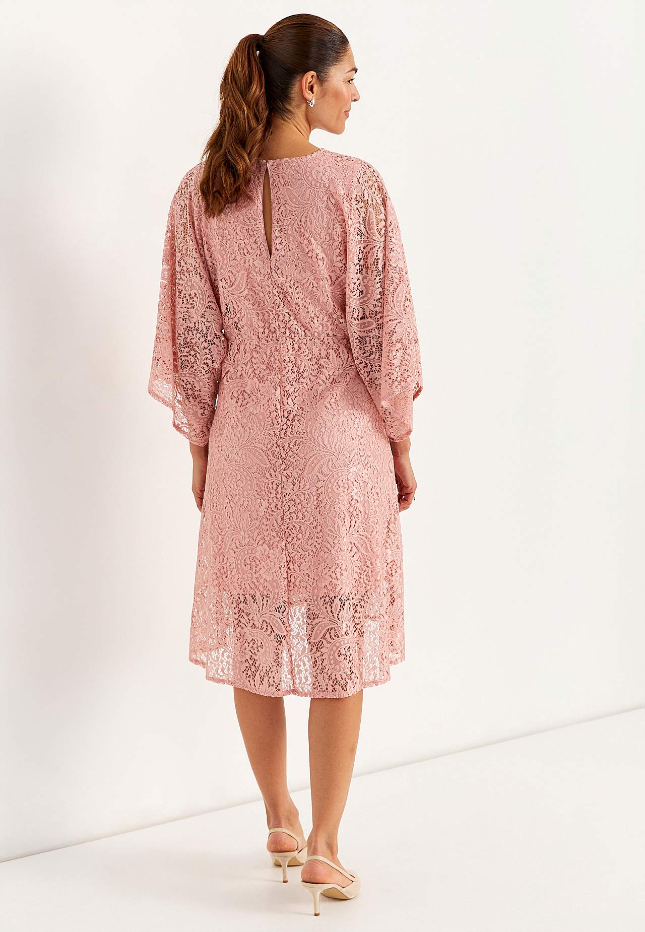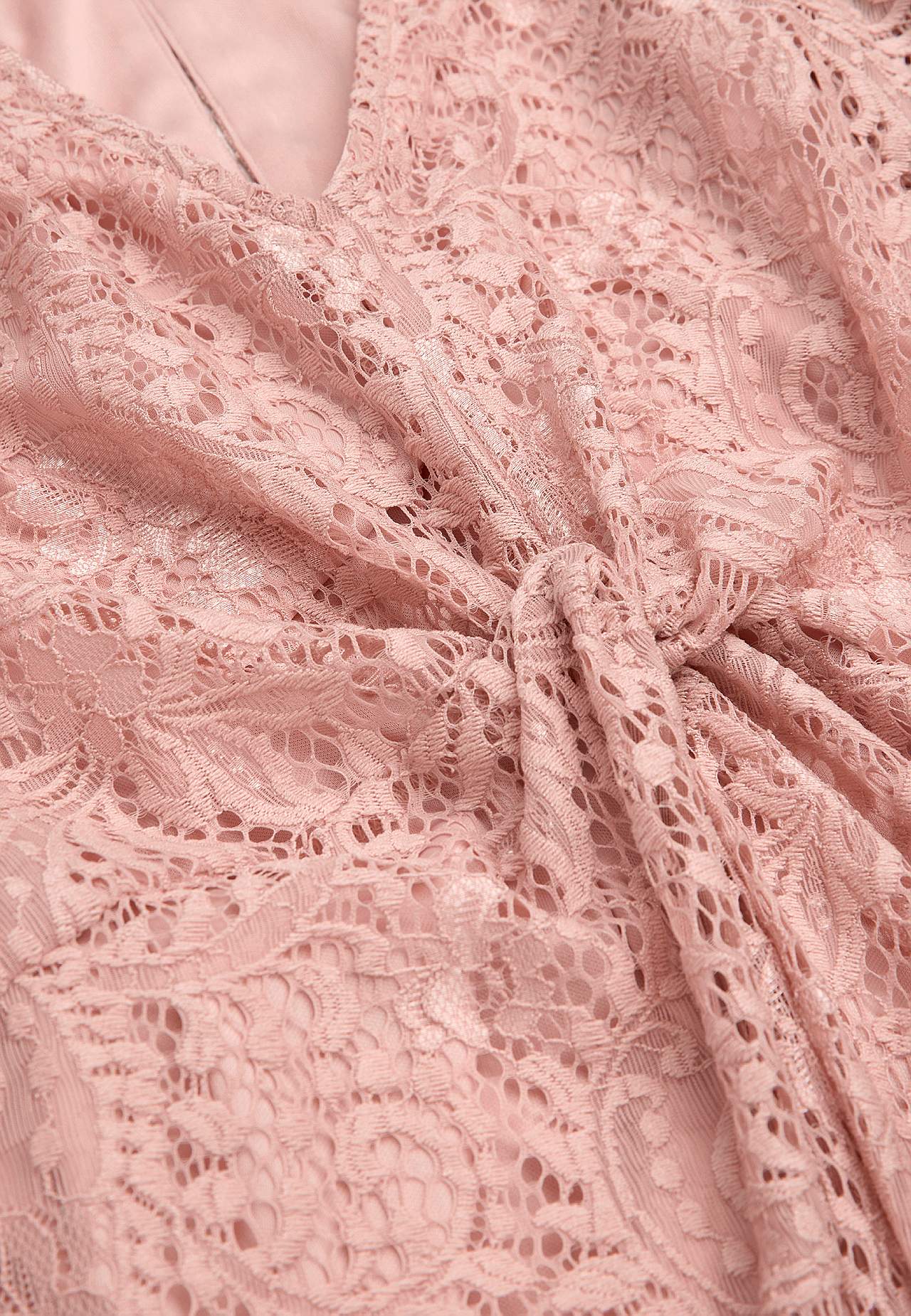 Comfortabele jurk met zachte elastische jersey kant en flexibele voering. Regular pasvorm. Bepaald taille met zachte kreuk details. Uitlopende rok met mooie drapering. Zachte en elastische tricotvoering. Diepe v-halslijn met gedraaid en flaterend detail aan de voorkant. Spleet in de nek met bedekte knop. Wijde en ongevoerde... Meer lezen