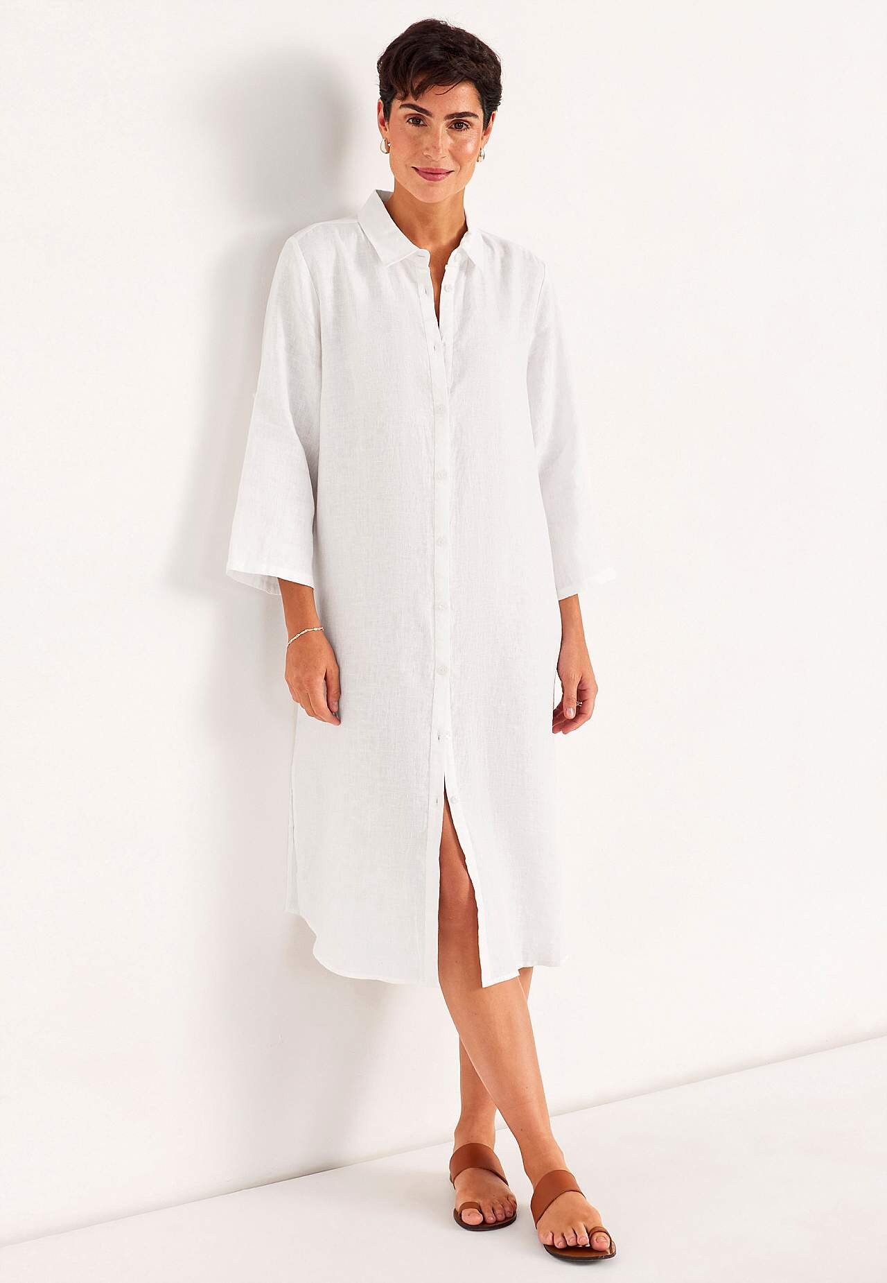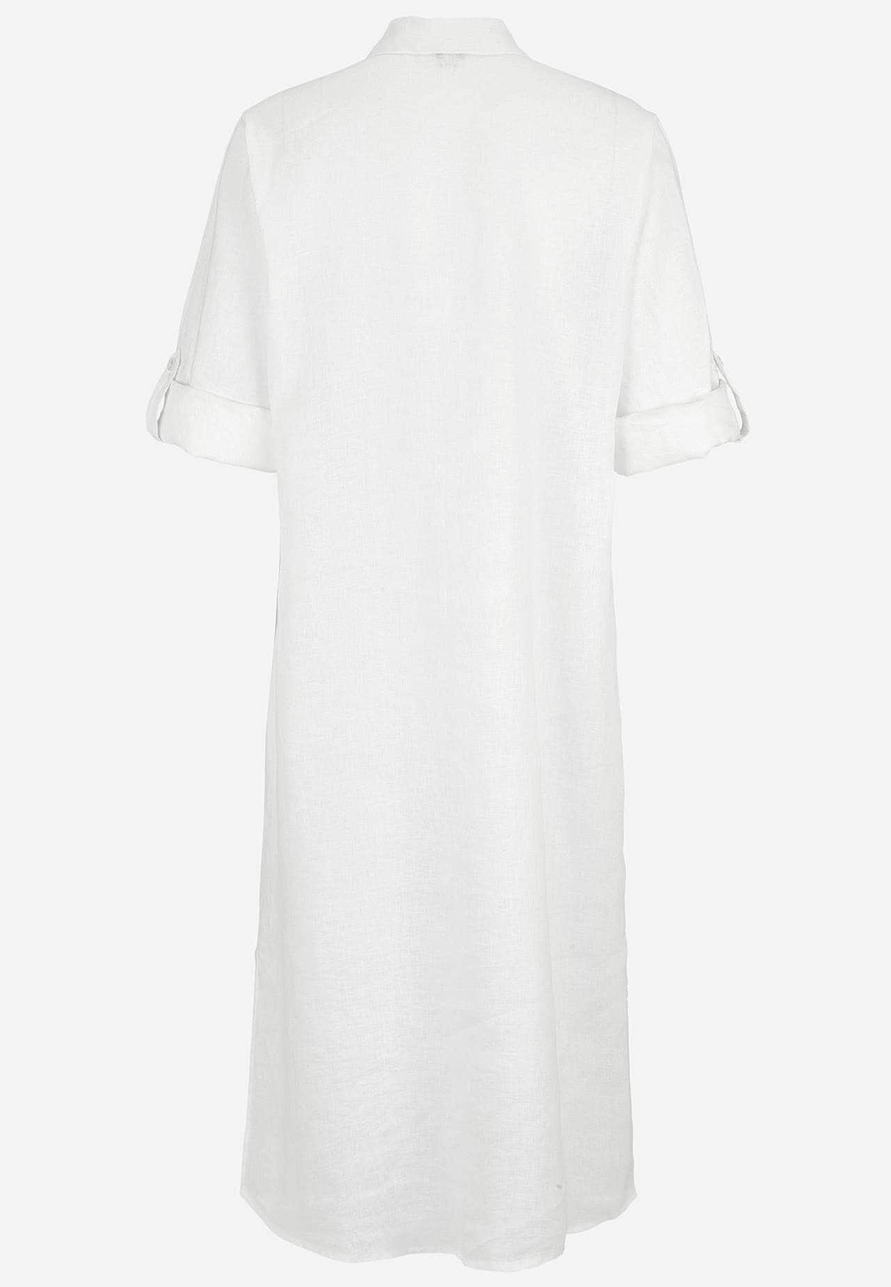 Hemdjurk van 100% vlas. Luchtig materiaal. Ruime en rechte snitte pasvorm. Knoopsluiting van boven naar beneden. Opvouwbare lange mouw met knoop detail. Coupenaden aan de borsten voor de beste pasvorm. Een echte dagelijkse favoriet. De lengte varieert afhankelijk van de maat: ongeveer 116-124 cm vanaf de schouder.