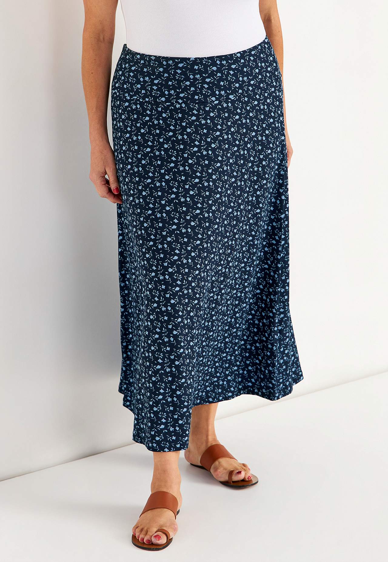 Lange en flared jersey rok