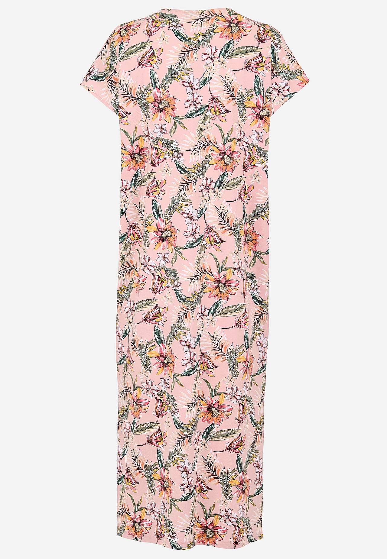 Zachte en elastische strandjurk van organisch katoen. Klassiek kaftan-model. Losse pasvorm. Rechte zoom met hoge spleet aan de zijkanten. De ruglengte is ca. 128 cm in alle maten.