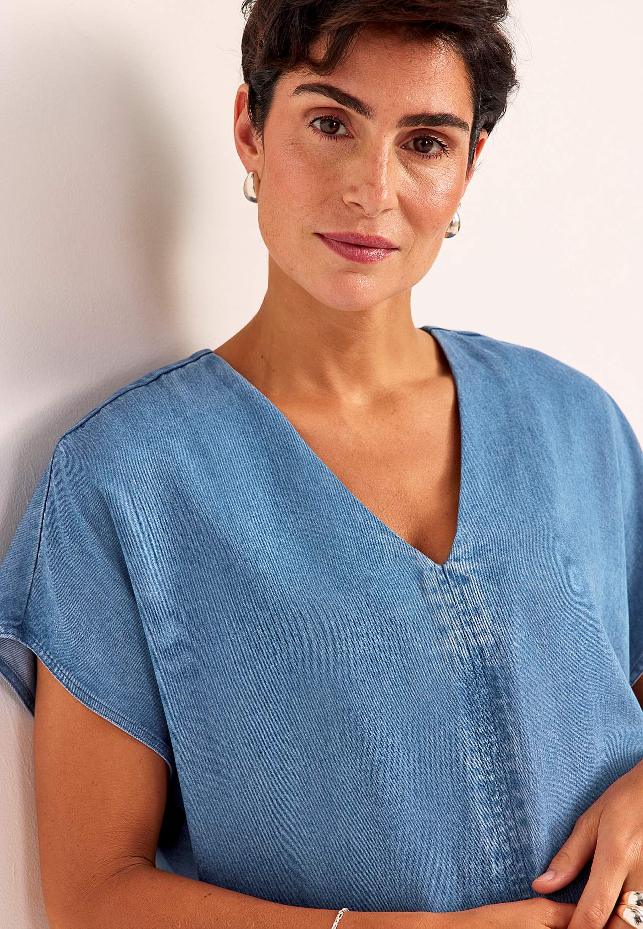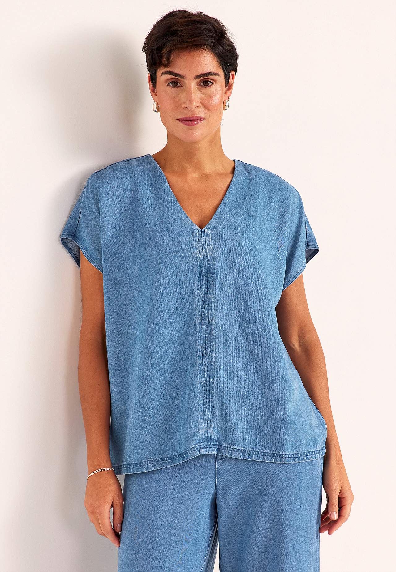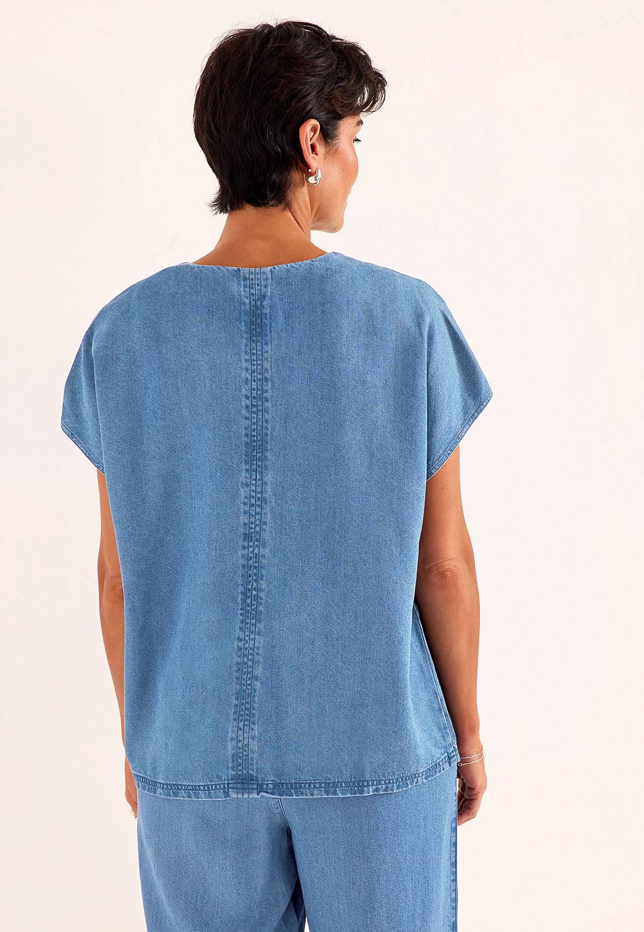 Bloes van denim met zacht en verbazingwekkend comfortabel lyocell. Stijlvol en vlak ontwerp. Glad materiaal met mooie val. Rechte en oversized pasvorm. Nek met een v-hals en mooie detailsteken in het midden aan de voor- en achterzijde. Korte kapmouwen. Lichtjes afgeronde zoom. Combineer met 701542. Om ervoor te zorgen dat ... Meer lezen