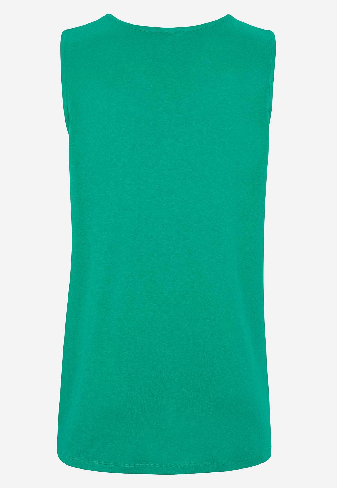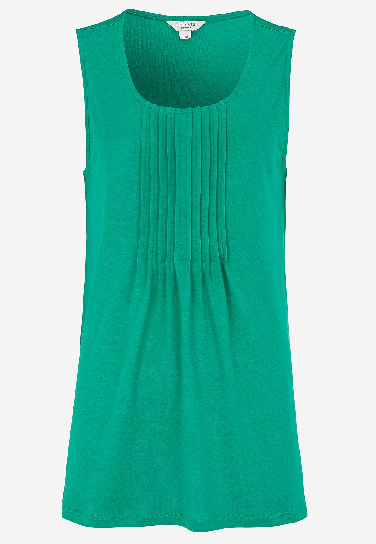 A-gevormde tanktop van zacht en organisch katoen met een modaal. Ideaal voor warme, heerlijke dagen! Ontwerp met decoratieve plooien aan de voorkant. Ronde nek. Rechte zoom. De lengte varieert afhankelijk van de maat: ongeveer 66-78 cm vanaf de schouder.