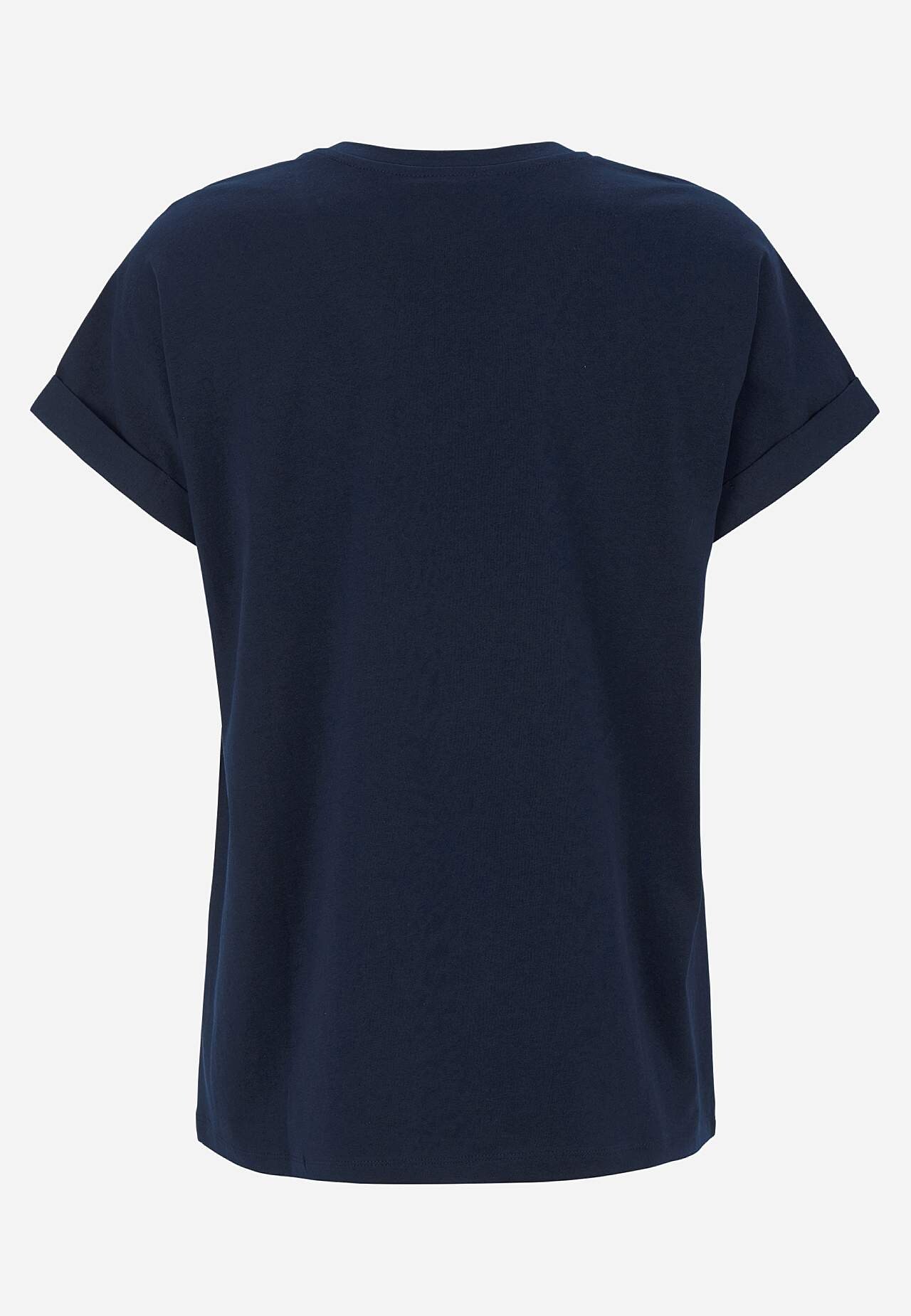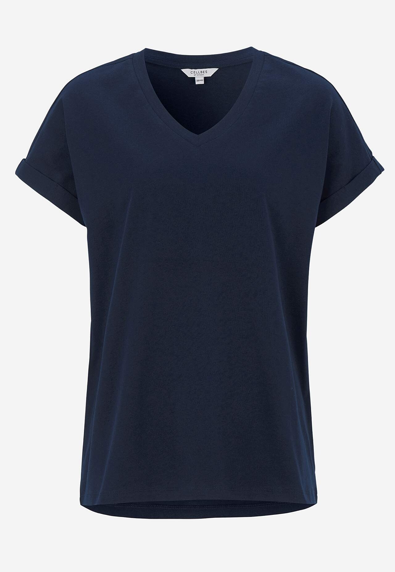 T-shirt van heerlijk zacht en organisch katoen. Losse pasvorm. Kapmouwen met vaste opgerolde mouw. Lichtjes afgeronde zoom. De ruglengte varieert per maat: ca. 65-73 cm.
