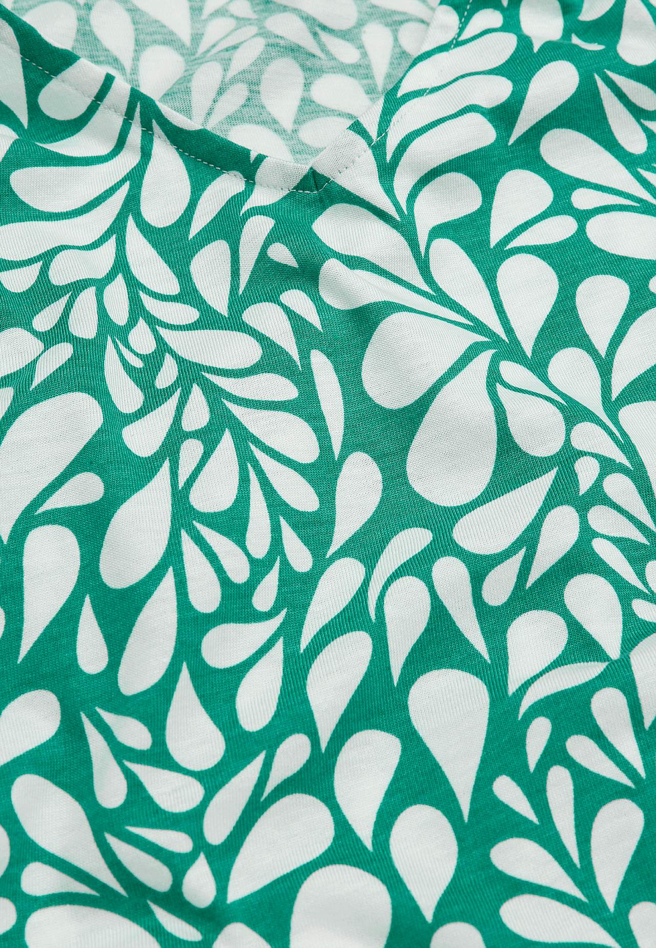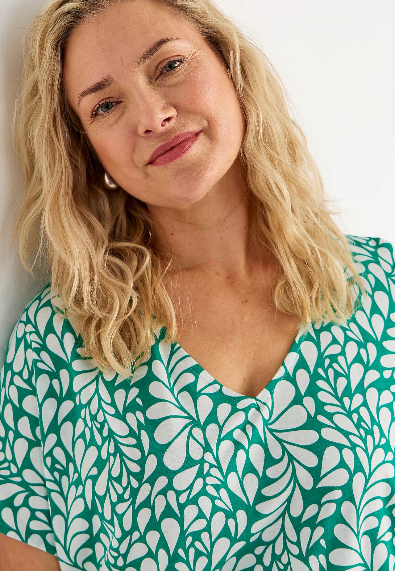 Topje van heerlijk zachte viscosemix. Losse pasvorm. Kapmouwen. Rechte zoom. Combineer met 702587. De ruglengte varieert per maat: ca. 61-71 cm.
