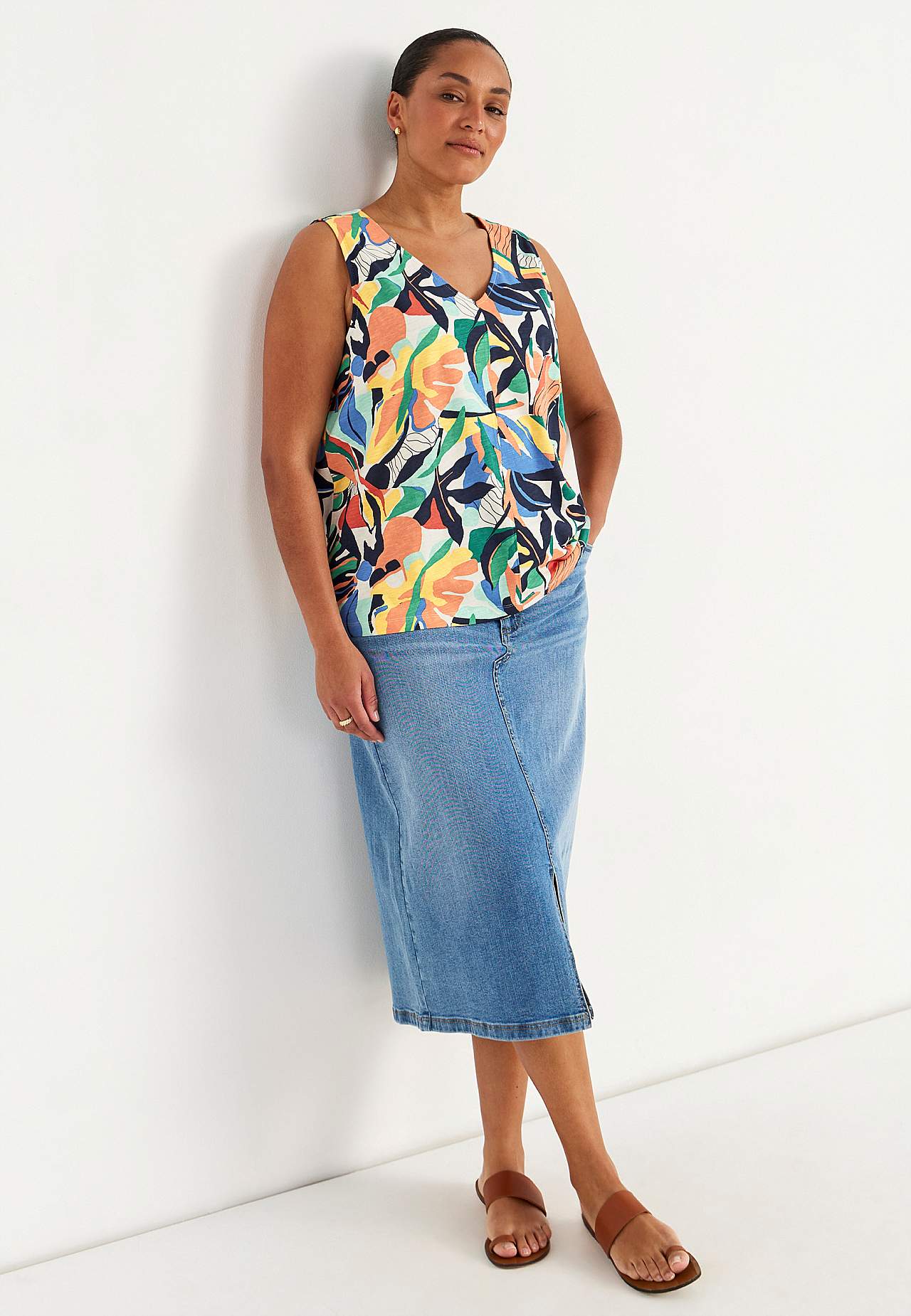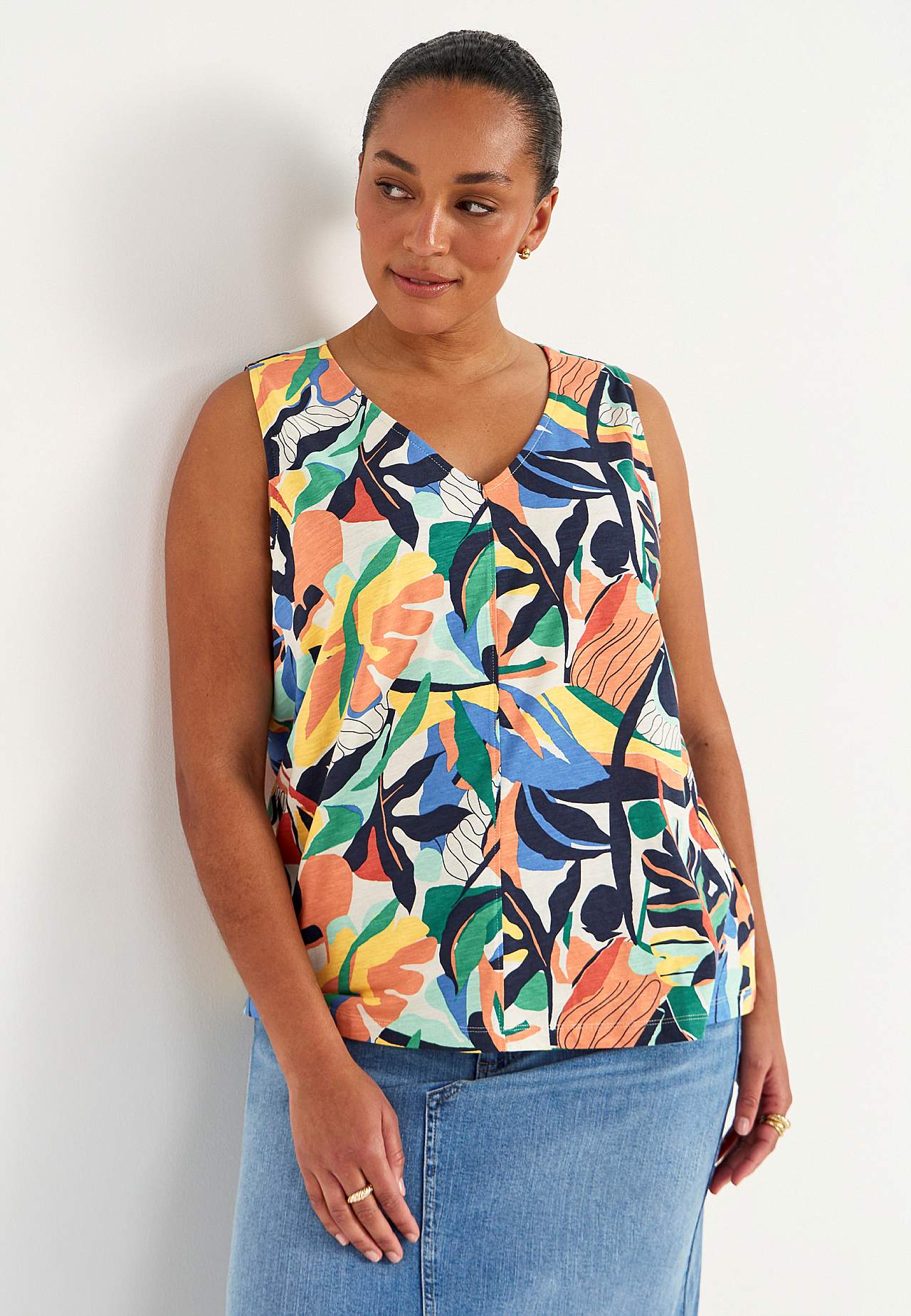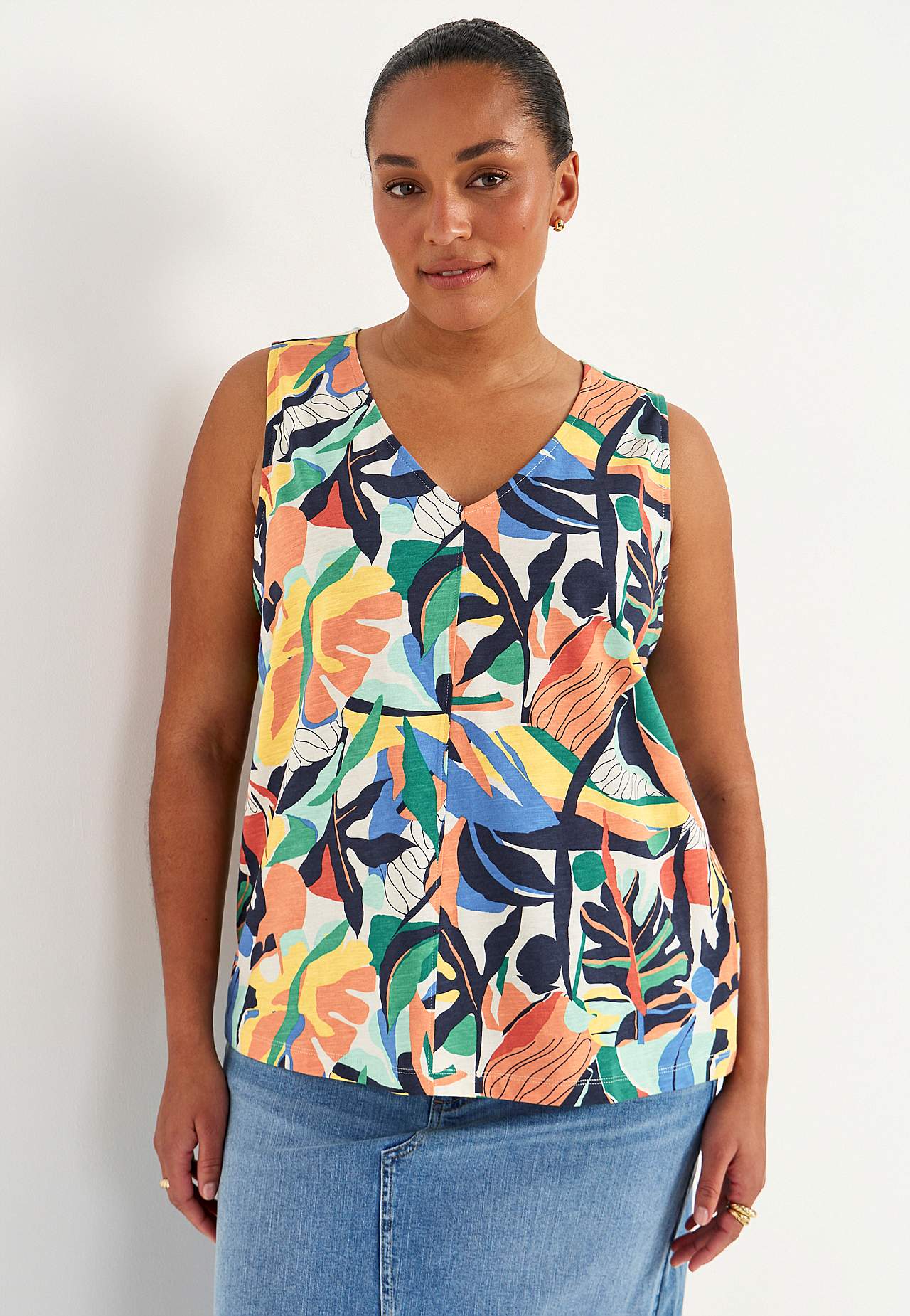 Mouwloos jersey-topje met v-halslijn