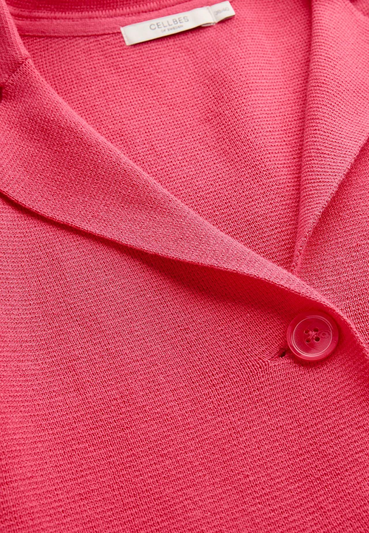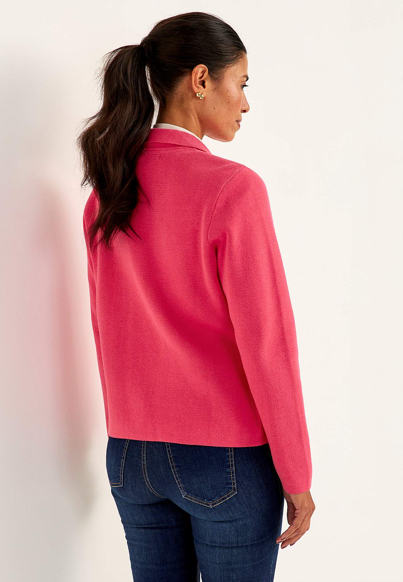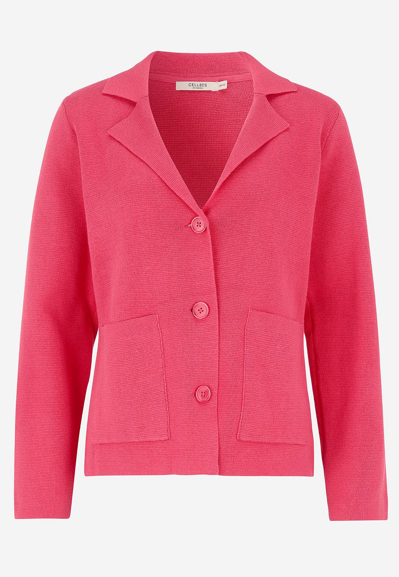 Fijn gebreide blazer van vormvaste en zachte katoenkwaliteit. Lichtjes getailleerde pasvorm. Schoon en stijlvol ontwerp perfect voor het hele jaar. Drie grote knoppen. Zakken aan de voorkant. Lange mouwen. De lengte varieert afhankelijk van de maat: ongeveer 61-70 cm vanaf de schouder.