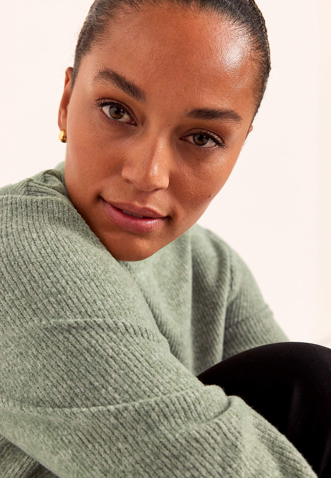 Zachte en gebreide tuniek. Elastisch en geribbeld materiaal met geborstelde oppervlakte. Rechte pasvorm. Ronde hals. Getailleerde naden aan de voorkant met ingenaaidde en verborgen zakken. Decoratieve en horizontale middennaad. Lange en rechte mouwen. Zachte ronde zoom. De lengte varieert afhankelijk van de maat: ongeveer 8... Meer lezen