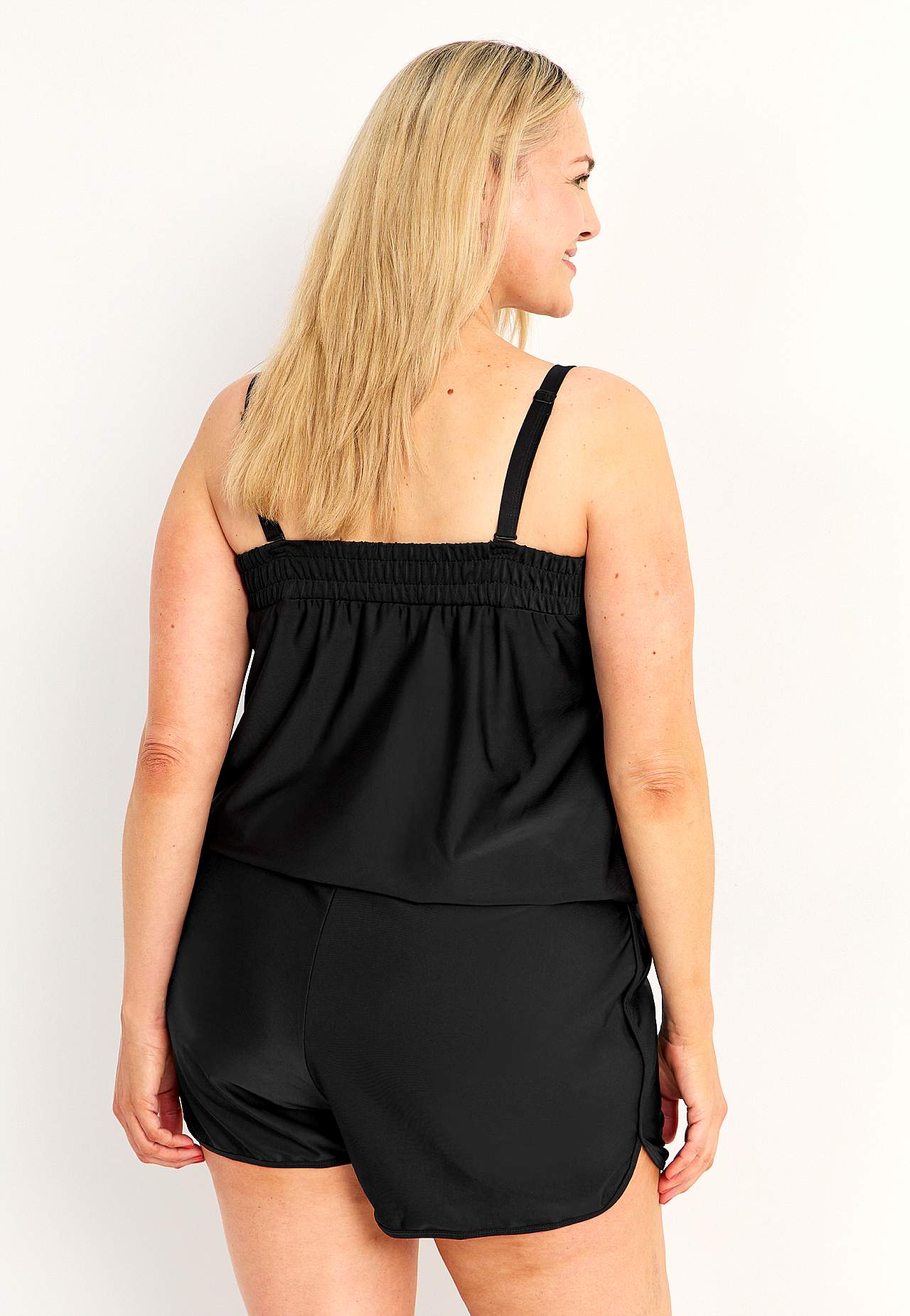Deze zwemplaysuit is een stijlvol en praktisch alternatief voor een tankini-set waarbij het boven- en onderstuk aan elkaar vastzitten . In deze stijlvolle en licht sportieve playsuit voel je je stijlvol en comfortabel op het strand . De afneembare schouderbandjes kunnen ook recht, gekruist op de rug of als halternek gedrage... Meer lezen
