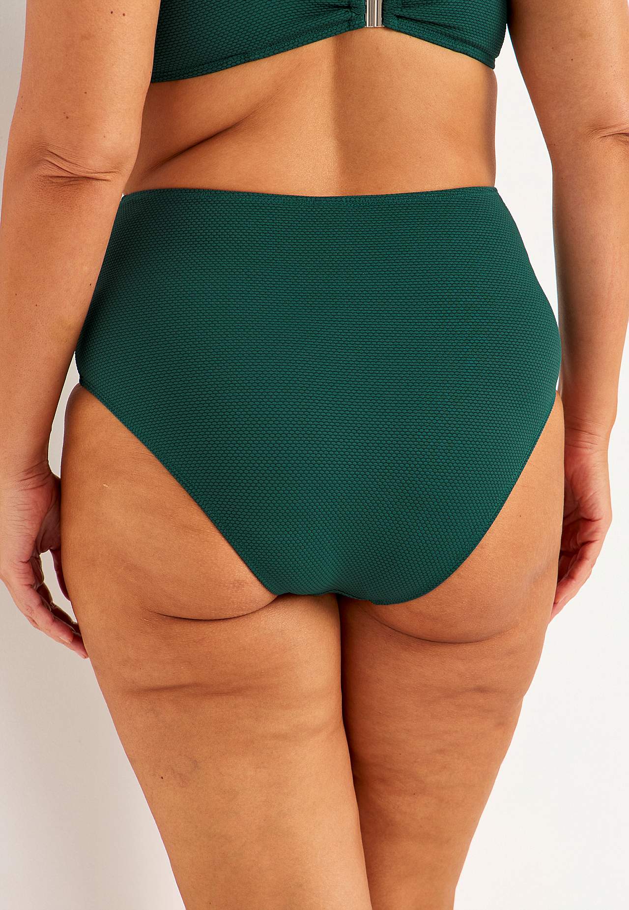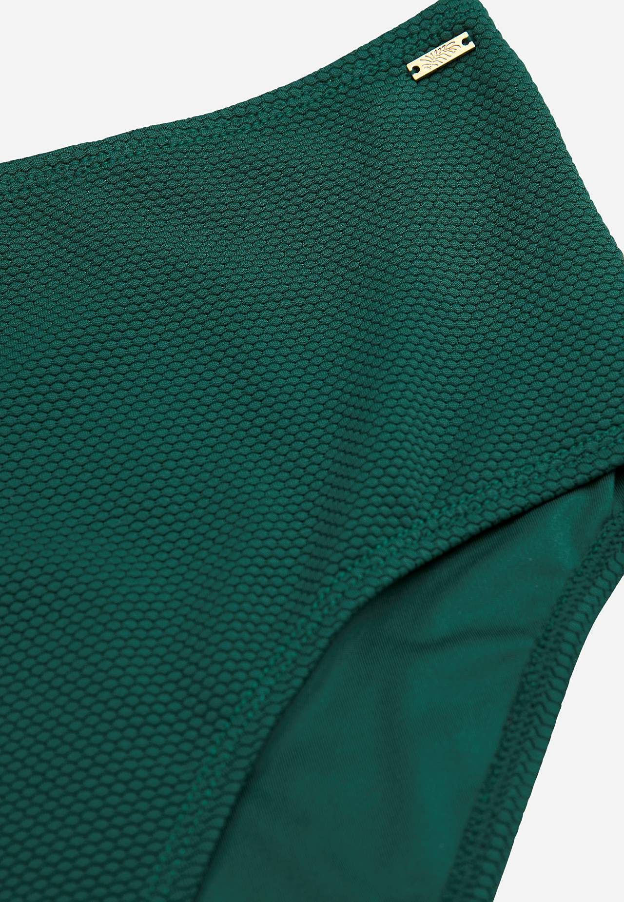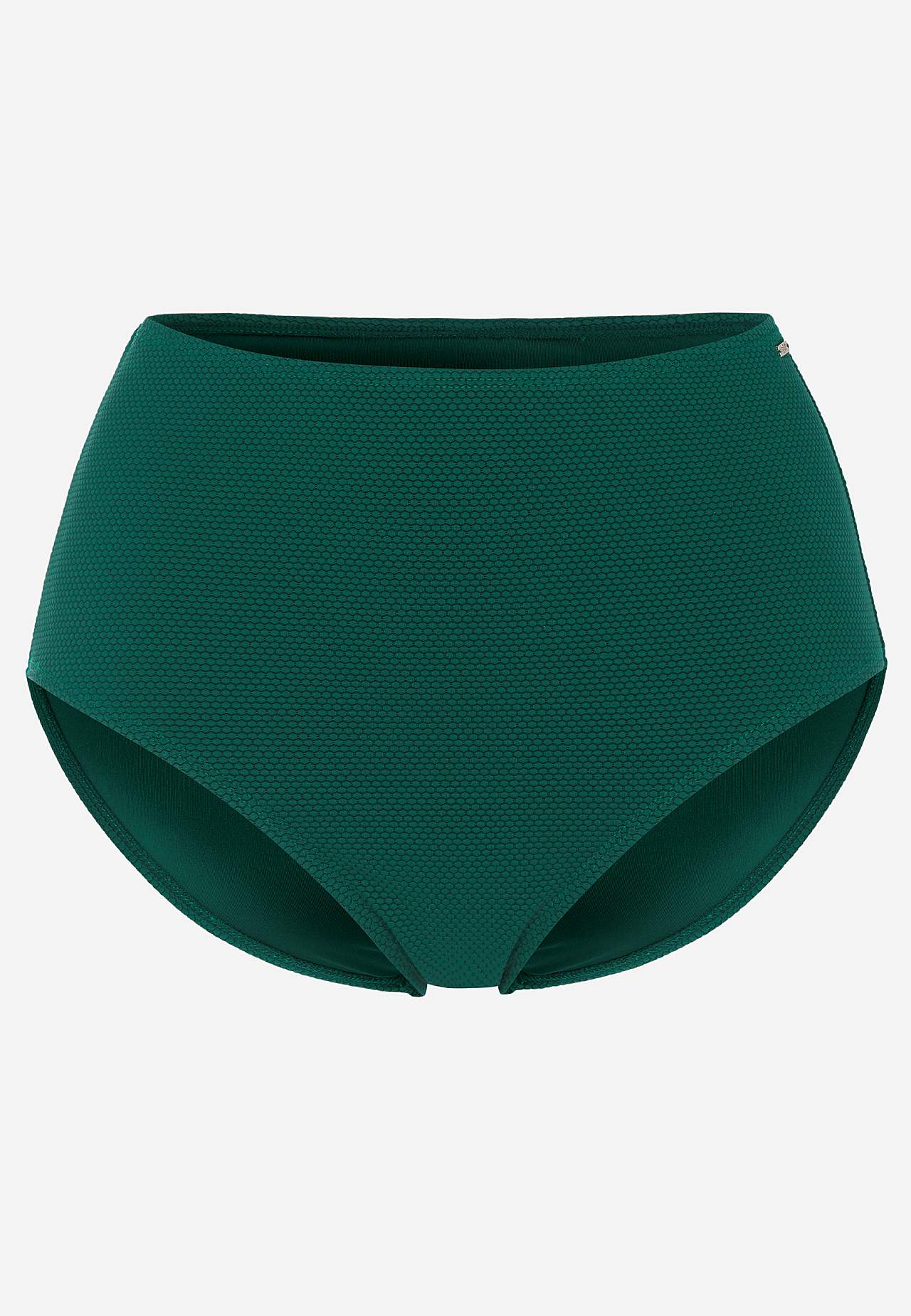 Structurele patronen bikinibroekje van gerecycleerd polyester. Hoge taille met zachte elastiek. Volledig gevoerde binnenkant.