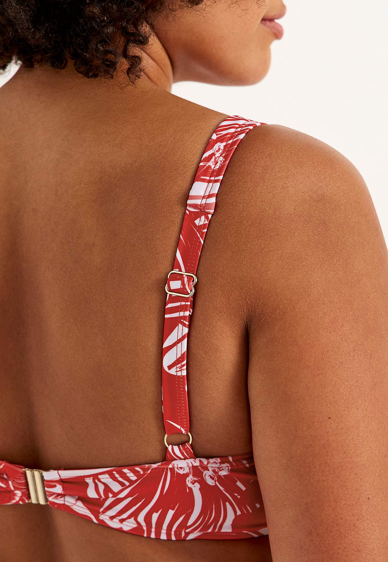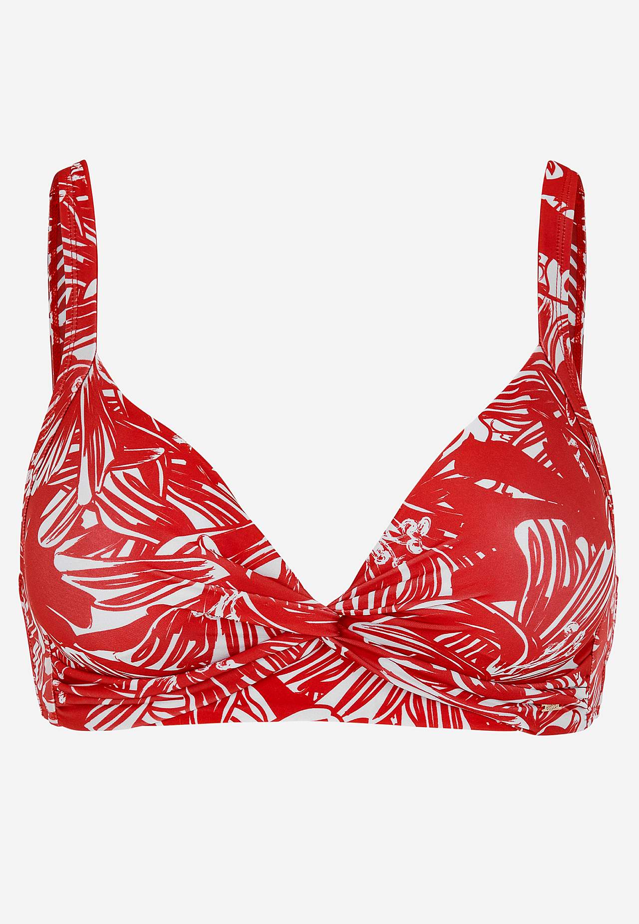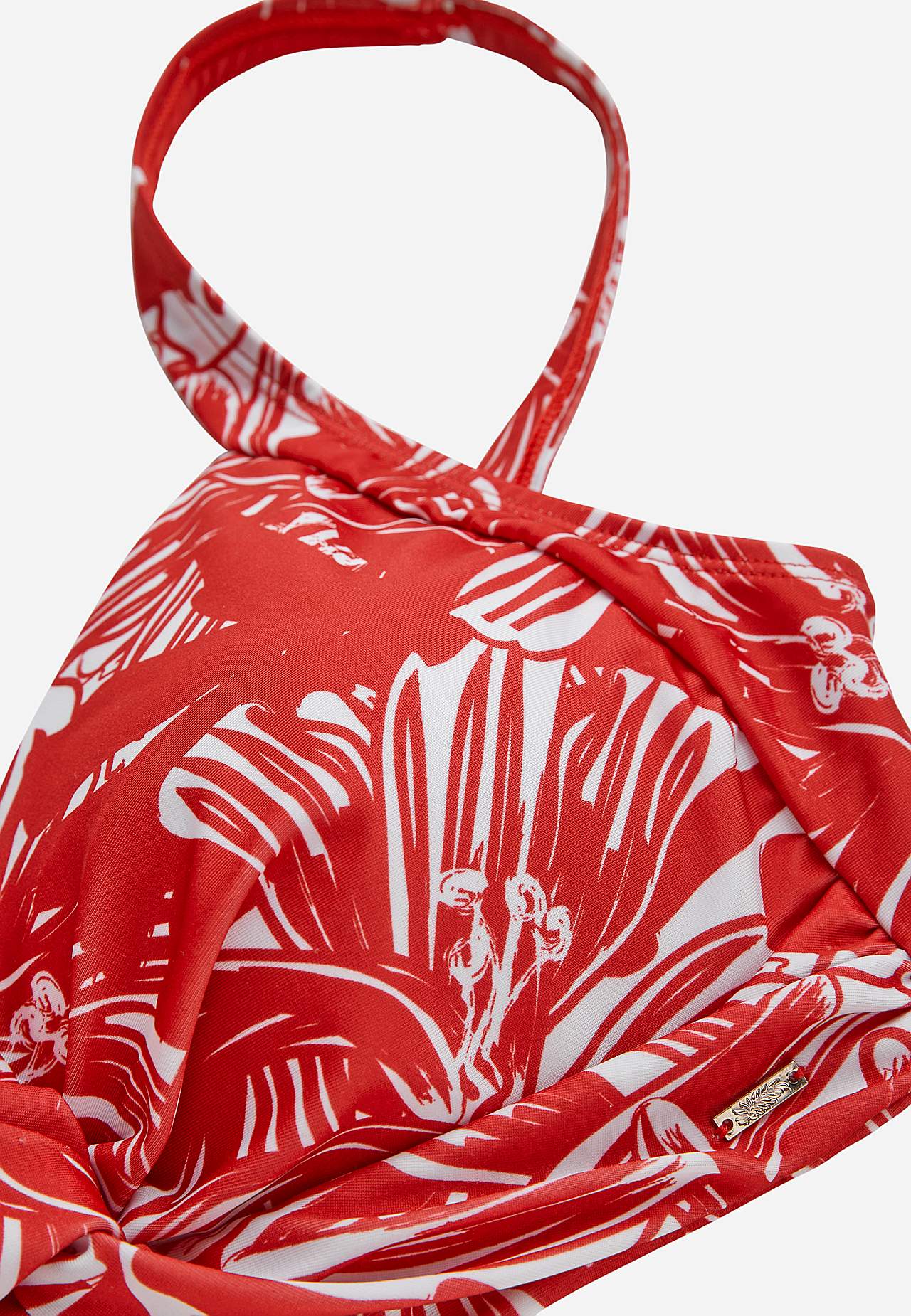 Zachte en beugelloze bikini beha met steunrail aan de zijkanten voor bijkomende ondersteuning. Bikini van gerecycleerd polyester. Model met een bloemenpatroon. Kop met verwijderbare vulling. Aanpasbare schouderriemen voor de beste pasvorm. Gemakkelijk te sluiten metalen sluiting op het achterpand.