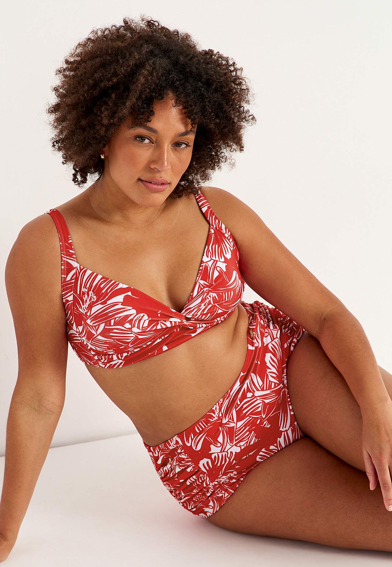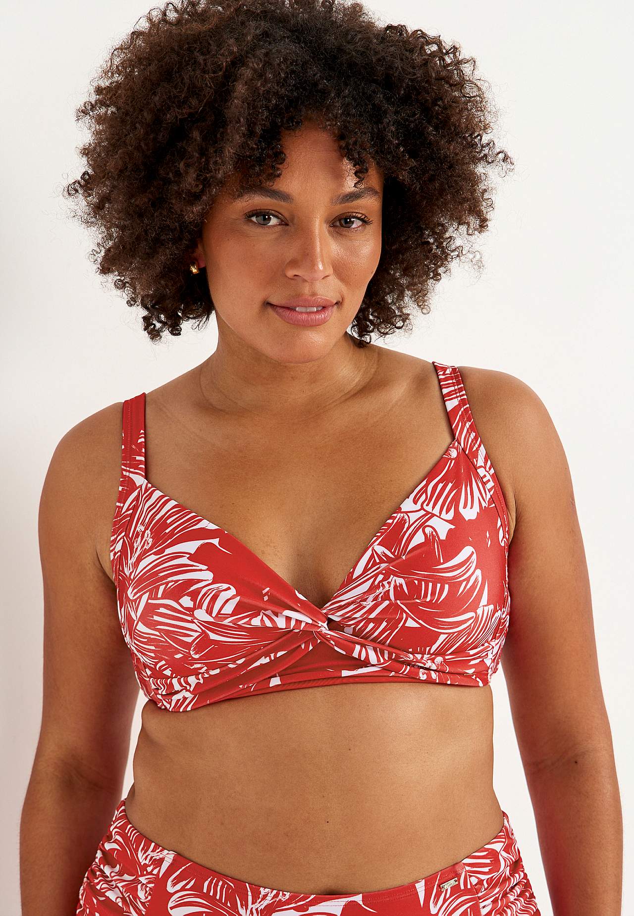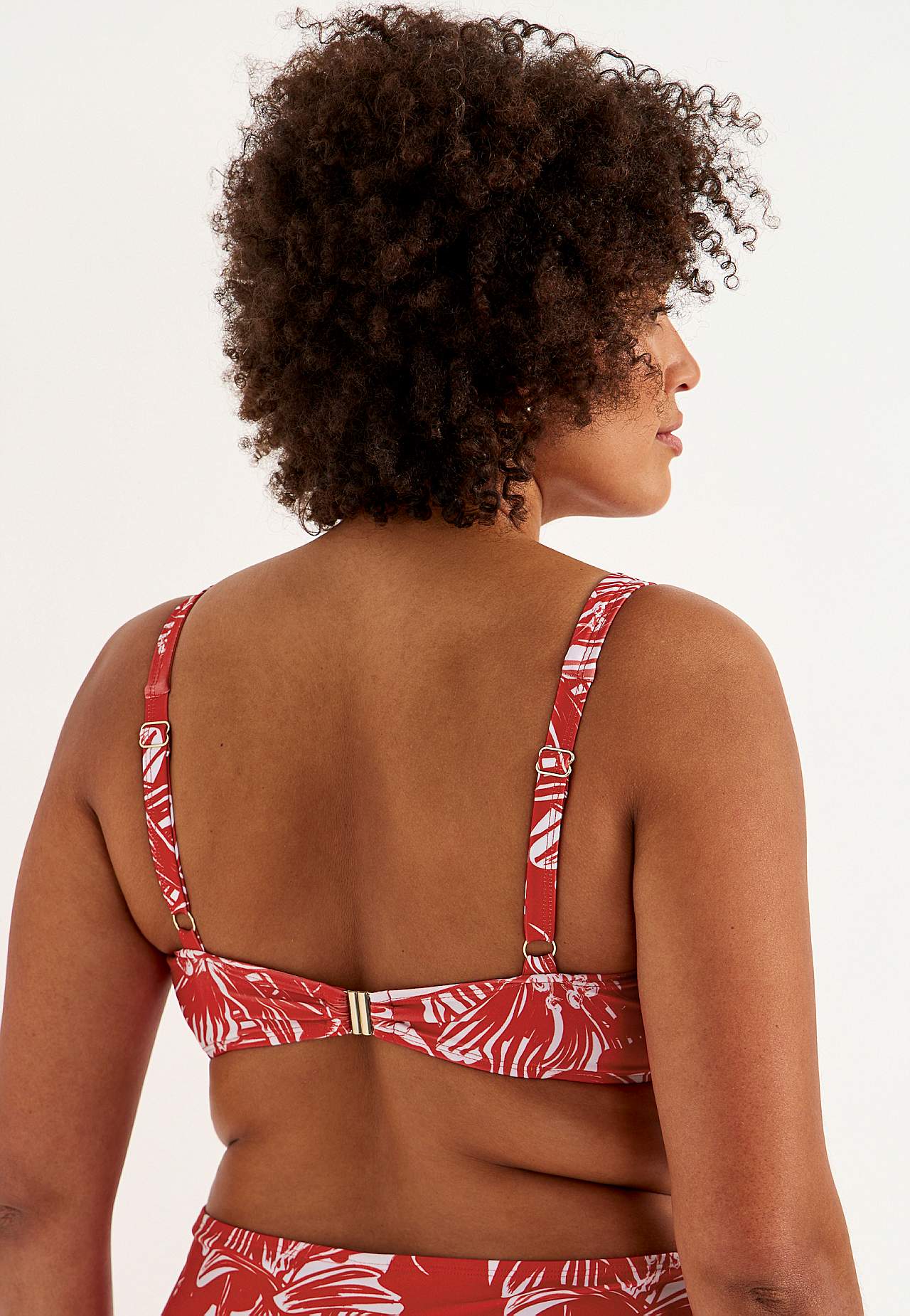Zachte en beugelloze bikini beha met steunrail aan de zijkanten voor bijkomende ondersteuning. Bikini van gerecycleerd polyester. Model met een bloemenpatroon. Kop met verwijderbare vulling. Aanpasbare schouderriemen voor de beste pasvorm. Gemakkelijk te sluiten metalen sluiting op het achterpand.