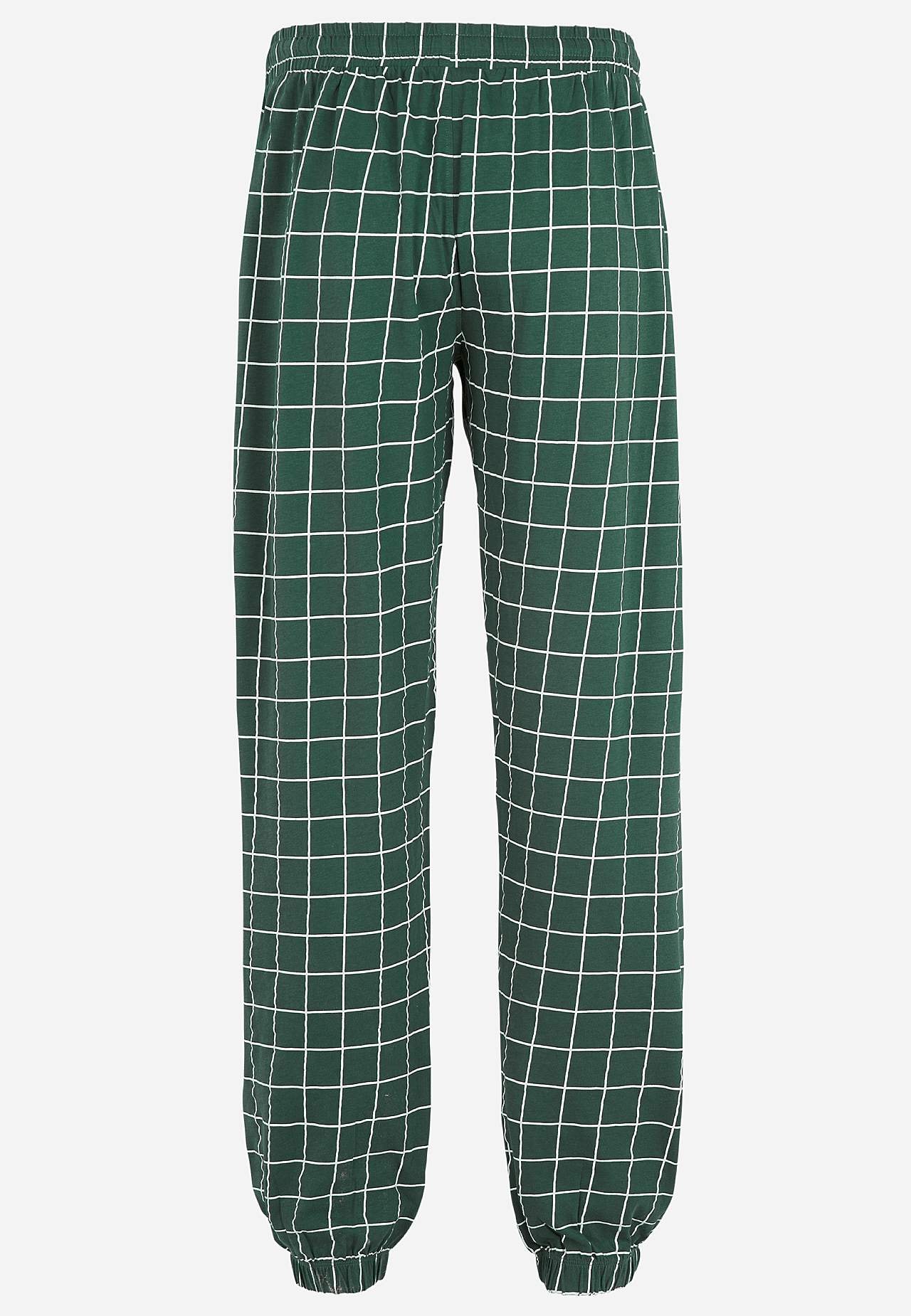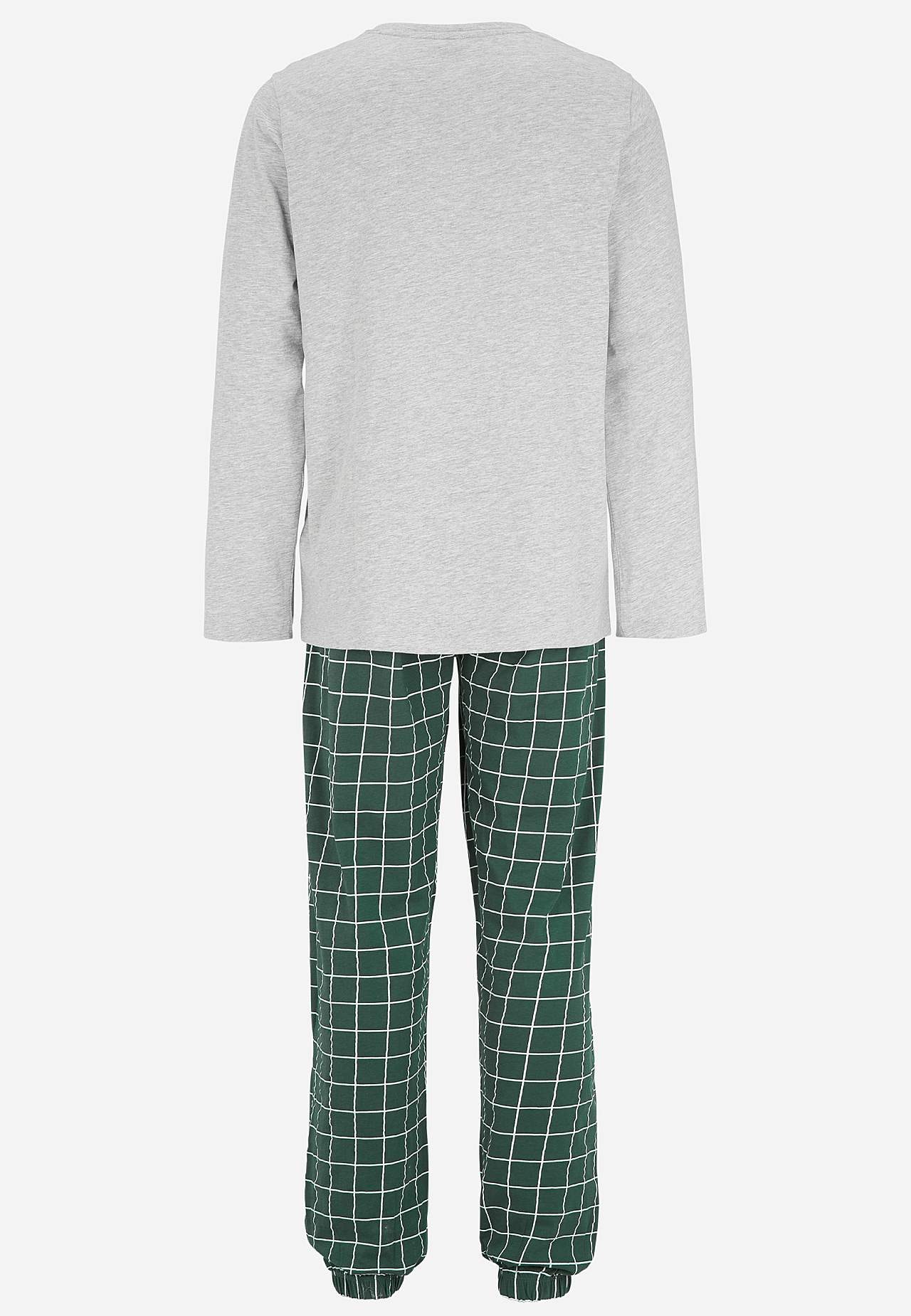 Pyjamaset van organisch katoen met eenkleurige trui met lange mouwen en geruite broeken. Bovenste gedeelte: Lange mouwen. Afgeronde neklijn. Borstzak. De ruglengte varieert per maat: ca. 73-88 cm. Onderkant: Comfortabelle jersey broek. Wijd model. Wijd been met elastiek aan de uiteinden van de benen. Zachte elastische taill... Meer lezen