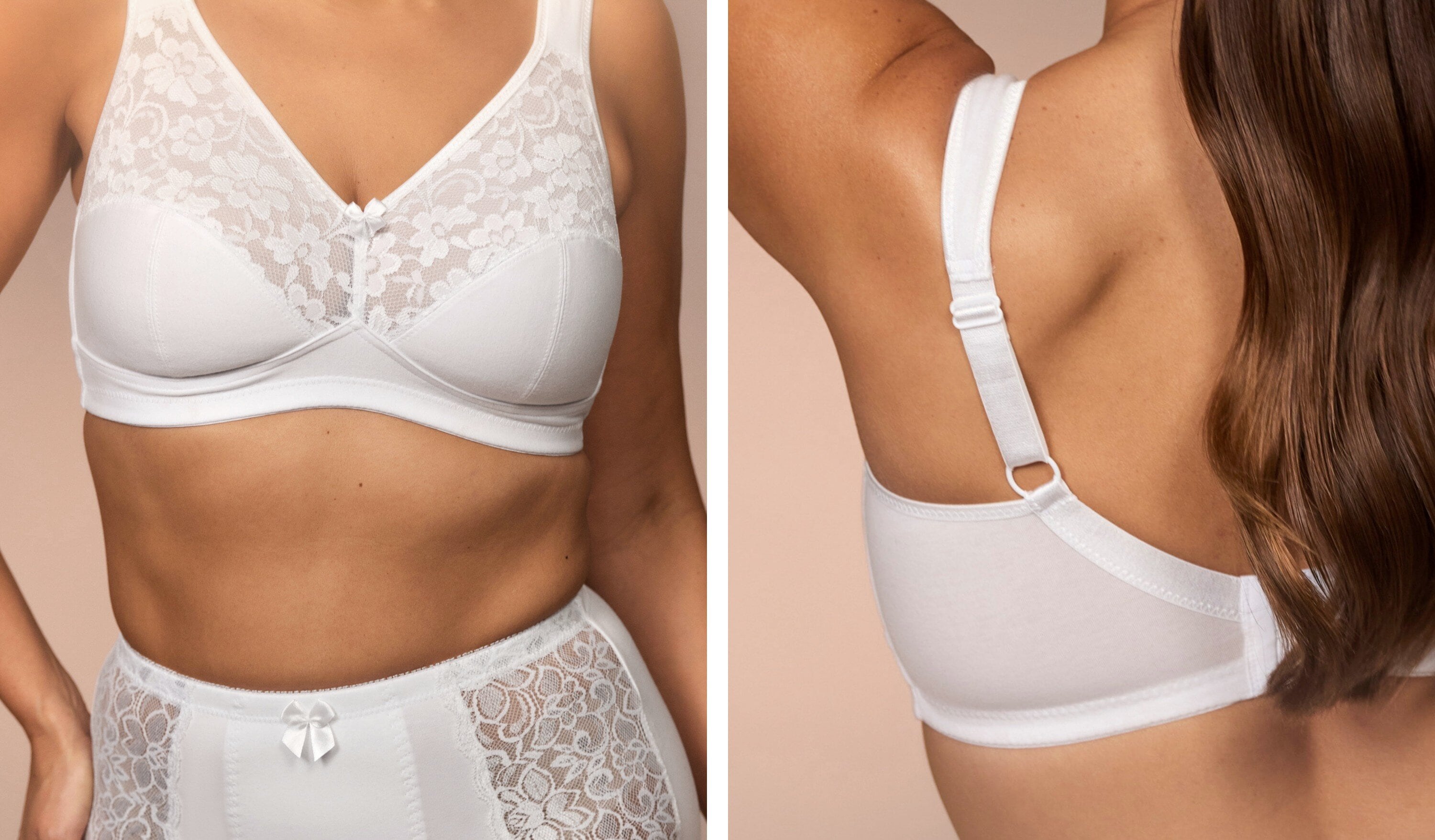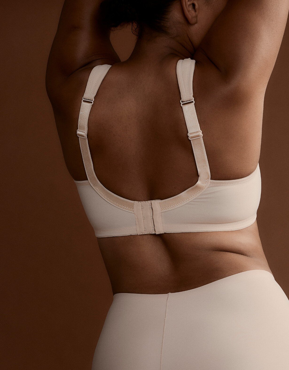 Een veelgemaakte fout is het kopen van een te grote omvangsmaat. Dan kruipt de bh omhoog op de rug en moeten de schouderbandjes al het gewicht dragen, wat schuurplekken kan veroorzaken. Sluit je bh bij aankoop altijd op de buitenste haakjesrij. Na verloop van tijd geven de stof en het elastiek wat mee, en dan kun je hem strakker sluiten. Kies voor de beste ondersteuning een bh met 3 of 4 haakjes. Veel van onze modellen hebben brede en gevoerde schouderbandjes – ideaal als je last hebt van schurende bandjes.