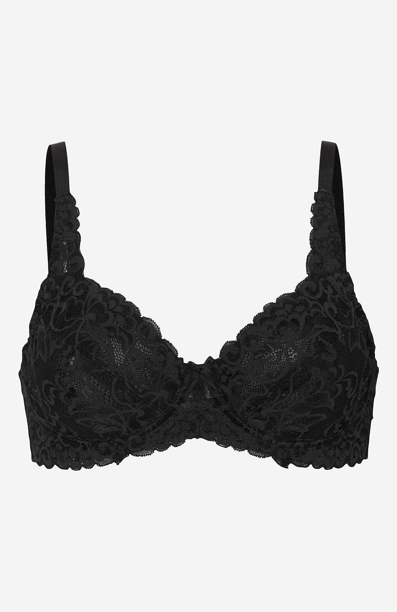 Ongevoerde beugel-bh met prachtig kant en gevormde koppen. Klassieke en vrouwelijke look. Beugel-bh. Ongevoerd. Sierlijk en romantisch ontwerp. Gevormde kanten cups met zege mesh voering. Vleugels van zacht microfiber. Platte en discrete cupnaden. Discreet klein strikje in ton-sur-ton kleur. Aanpasbare schouderbanden. 2-rij... Meer lezen