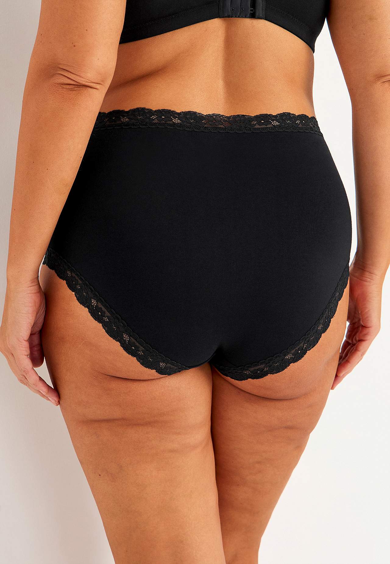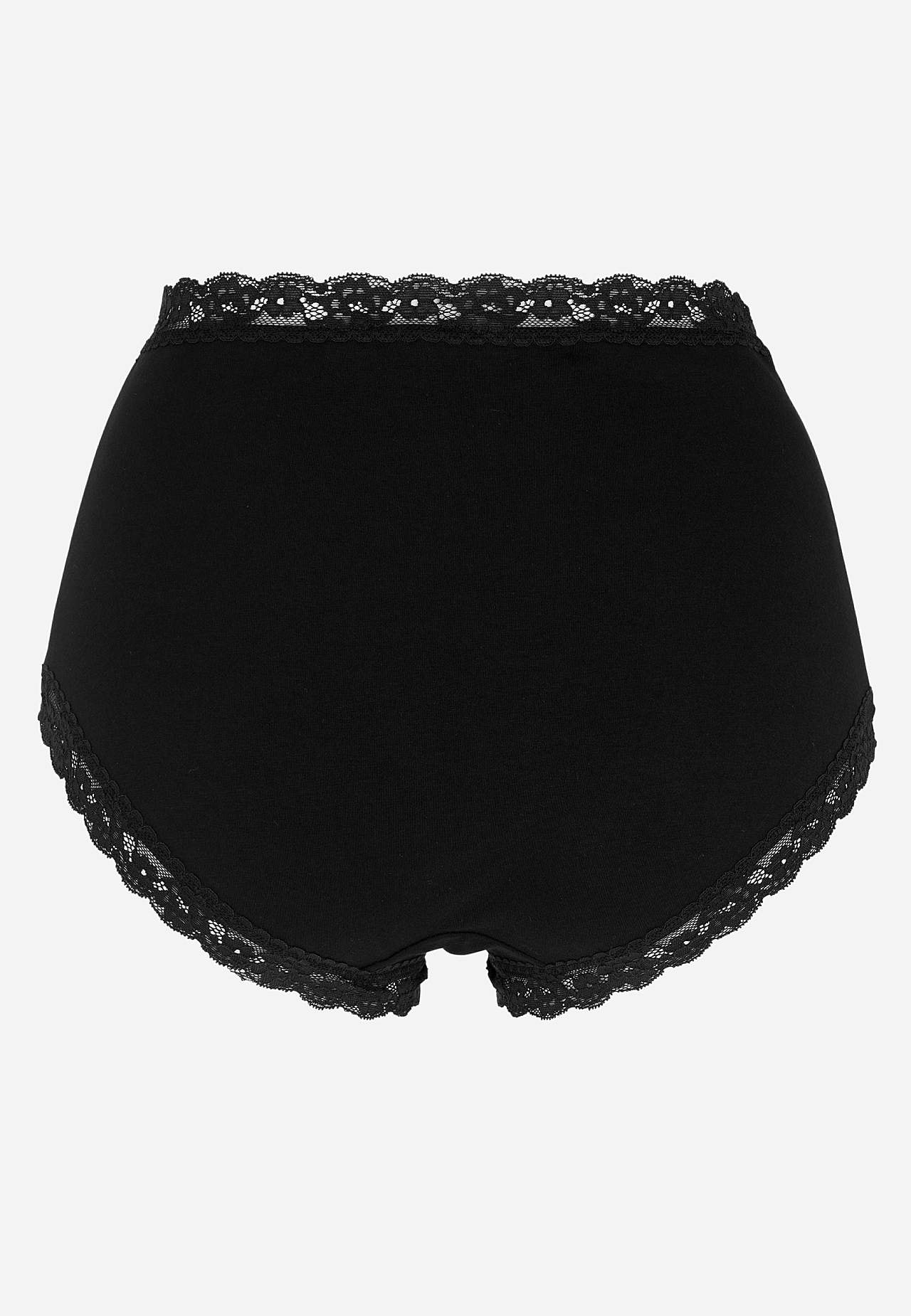 verkocht in verpakkingen van drie. Zachte vrouwenonderbroek met hoge taille. Katoen gevoerd kruis.