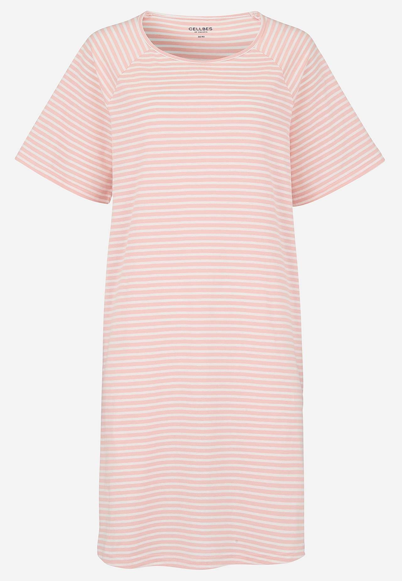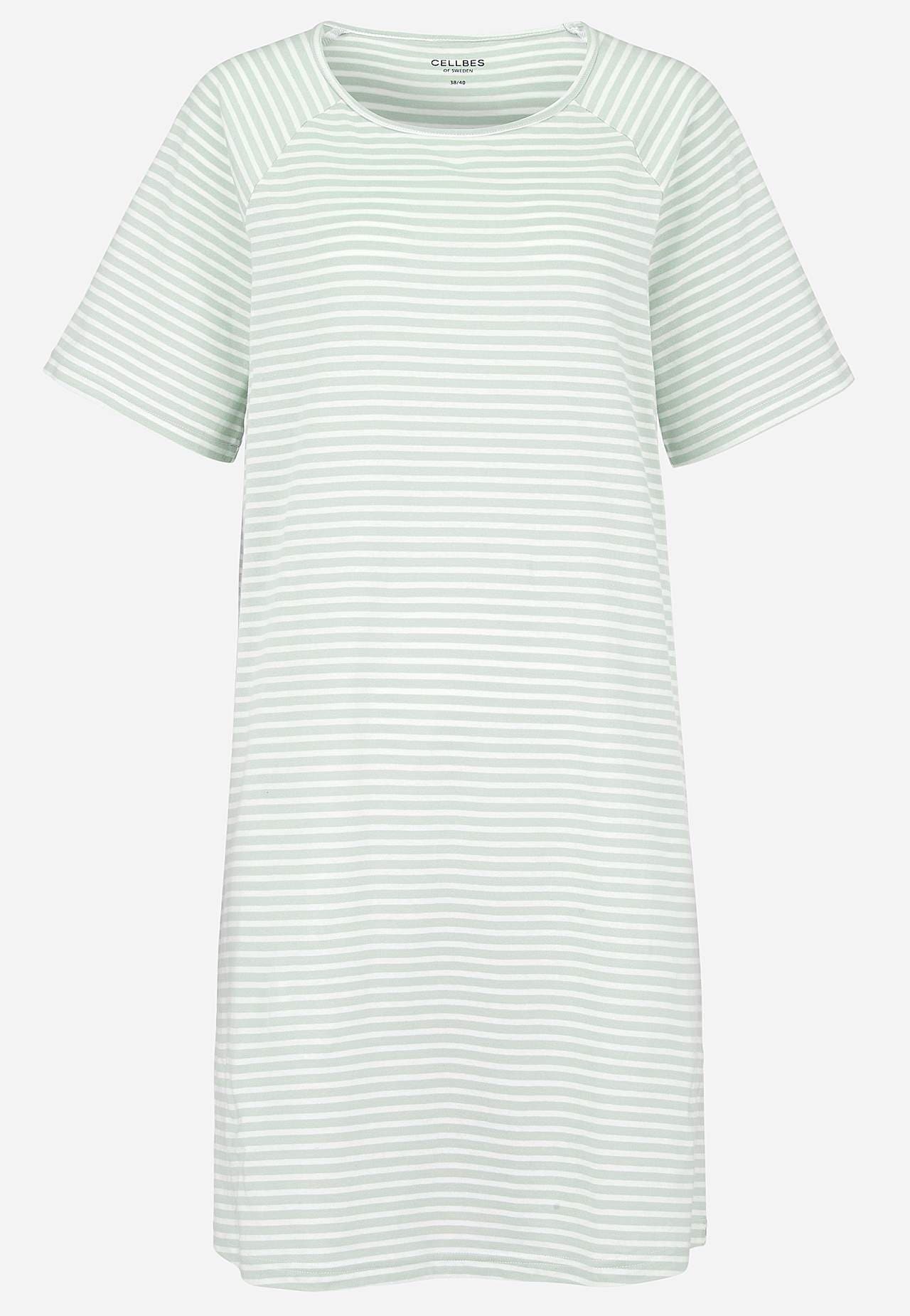 Korte tricot nachtjurk van zacht organisch katoen. Informele en licht a-lijnvormige pasvorm. Gestreept ontwerp. Ronde neklijn. Korte raglanmouw. Licht afgeronde zoom. De lengte varieert afhankelijk van de grootte: ongeveer 95-108 cm vanaf de achterste schouder.