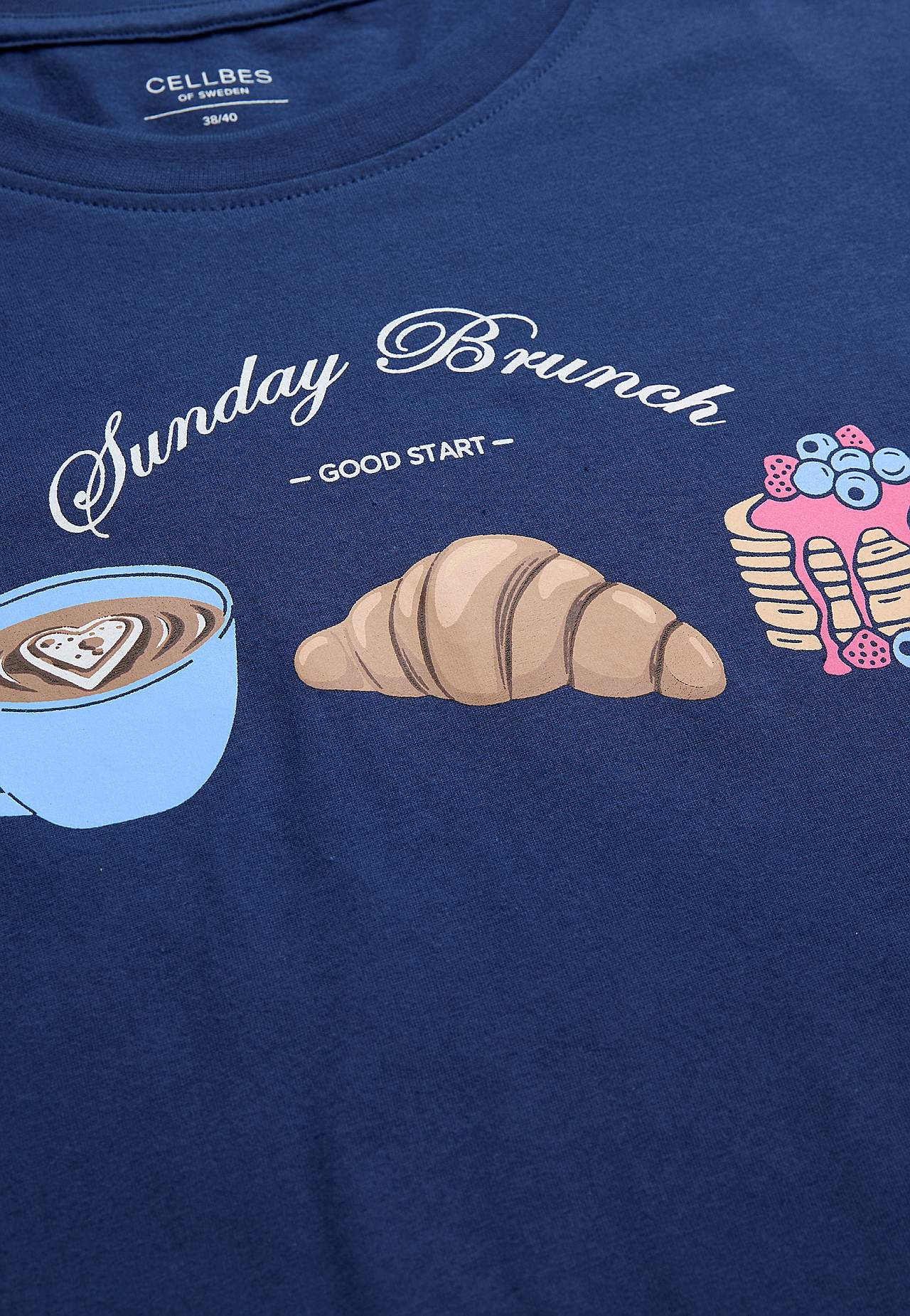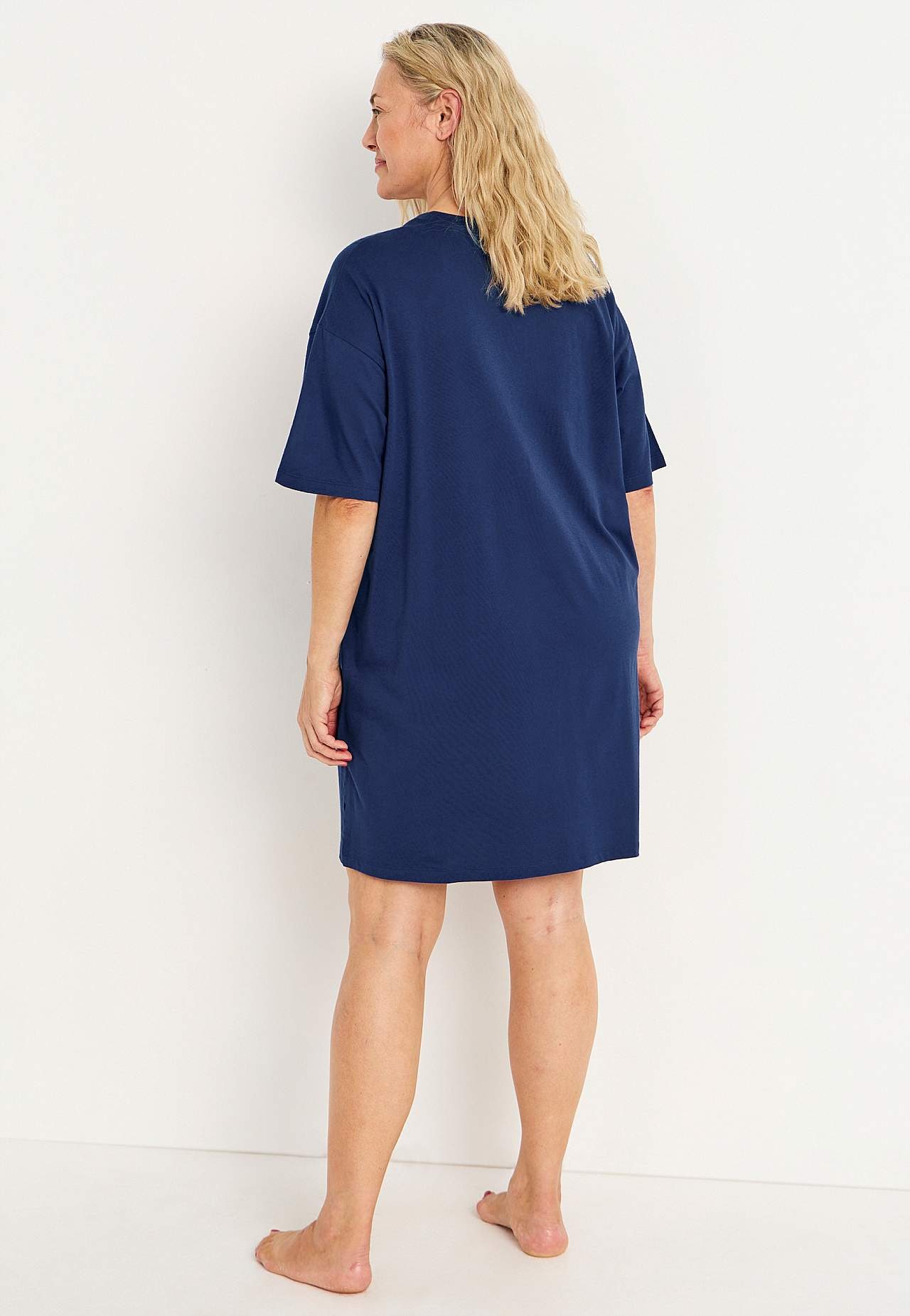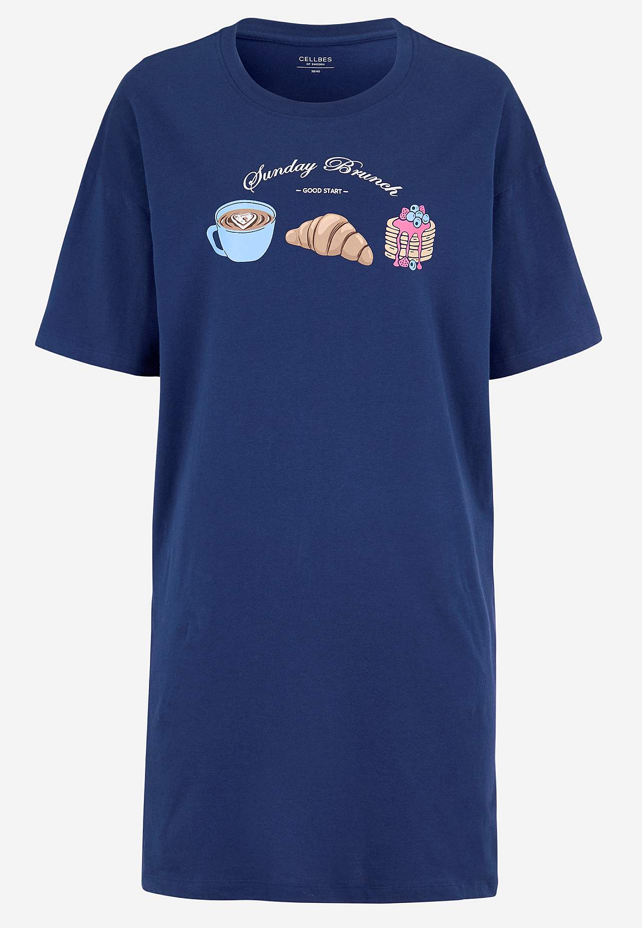 Korte nachtjurk van zacht organisch katoen. Print aan de voorkant. Informele en rechte pasvorm. Ronde neklijn. Korte mouwen met hangende schouder. Rechte zoom met spleet aan de zijkanten. De lengte varieert afhankelijk van de grootte: ongeveer 88-95 cm vanaf de achterste schouder.